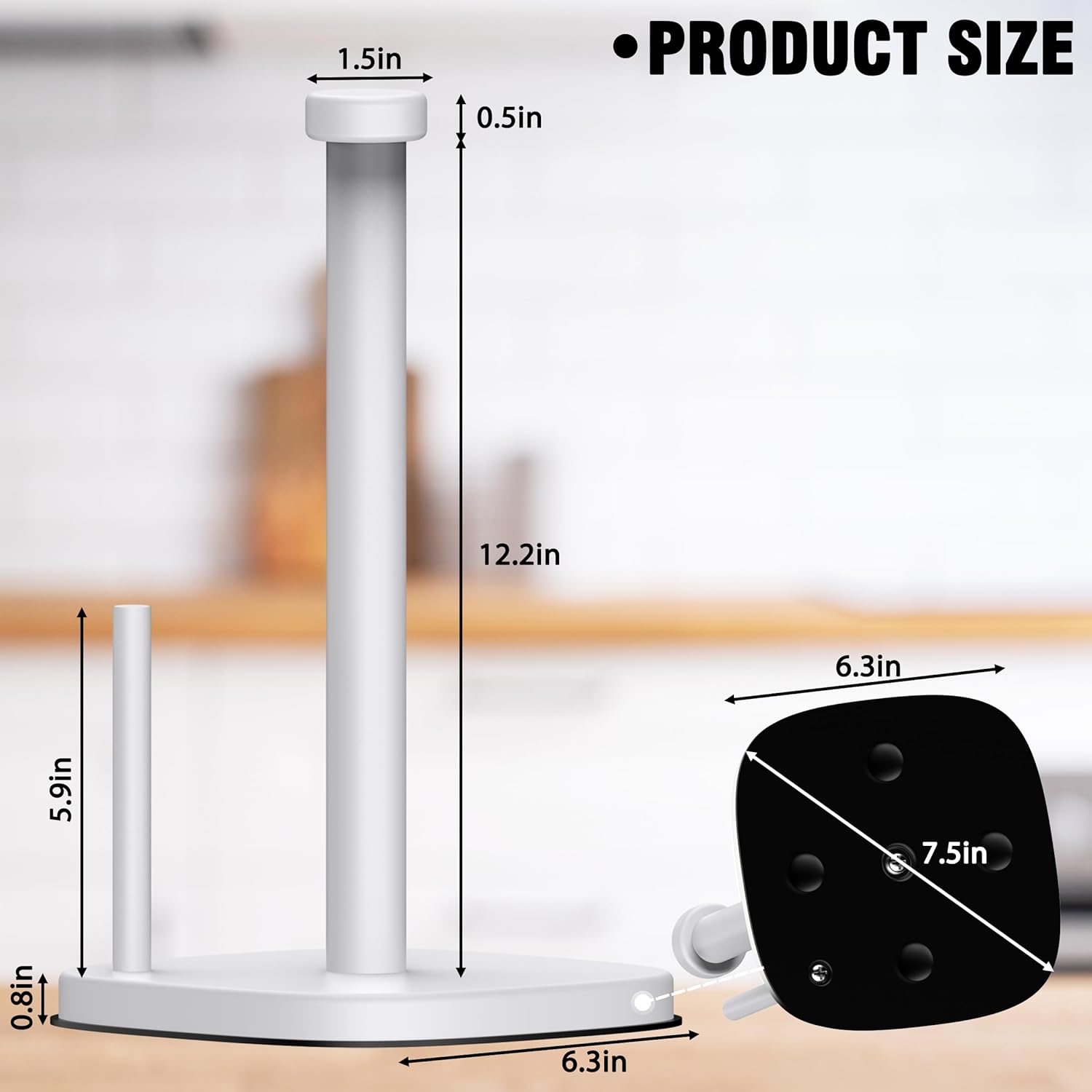 - 【Upgraded Square Base】The unique square base design of the paper towel holder makes your kitchen countertop look elegant and modern. The side bar design prevents the paper towel from sagging.