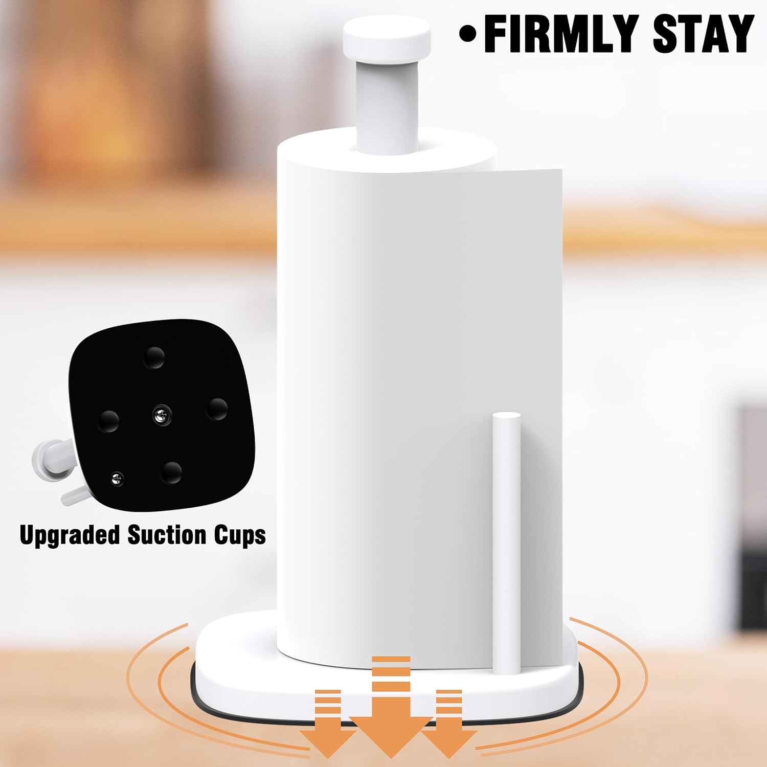 - 【Suction Cup Base Design】After installation, the bottom of the paper towel holder adds four round suction cups, which maintain good adhesion with the smooth table and will not loosen or shake. You can easily tear off the paper towels with one hand.