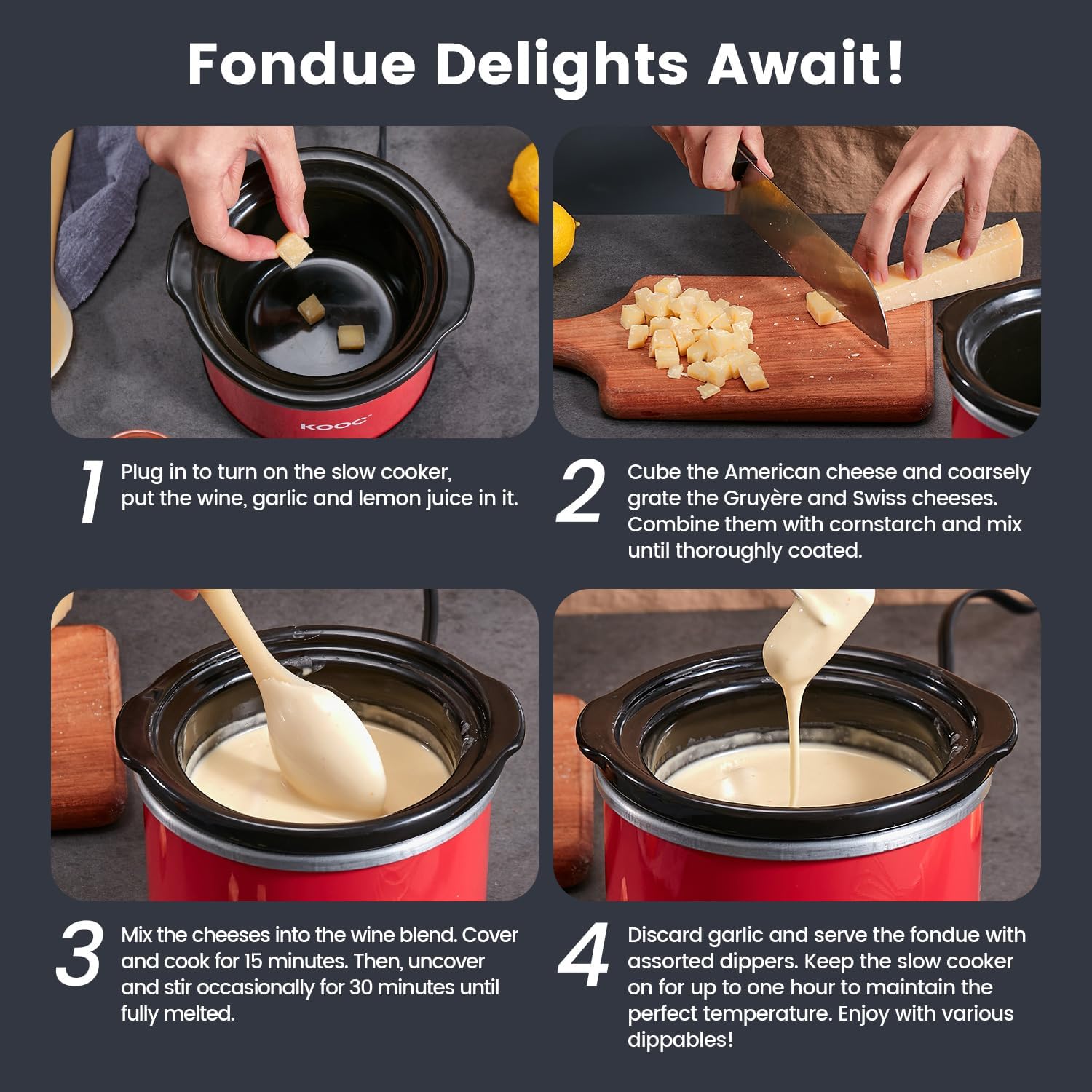 - [EXPANDABLE COLLECTION] KOOC slow cookers come in a wide range of sizes and colors to suit different cooking needs. From compact 0.65 Quart models perfect for singles or couples, to larger 8.5 Quart options ideal for families or entertaining guests, there's a slow cooker for everyone