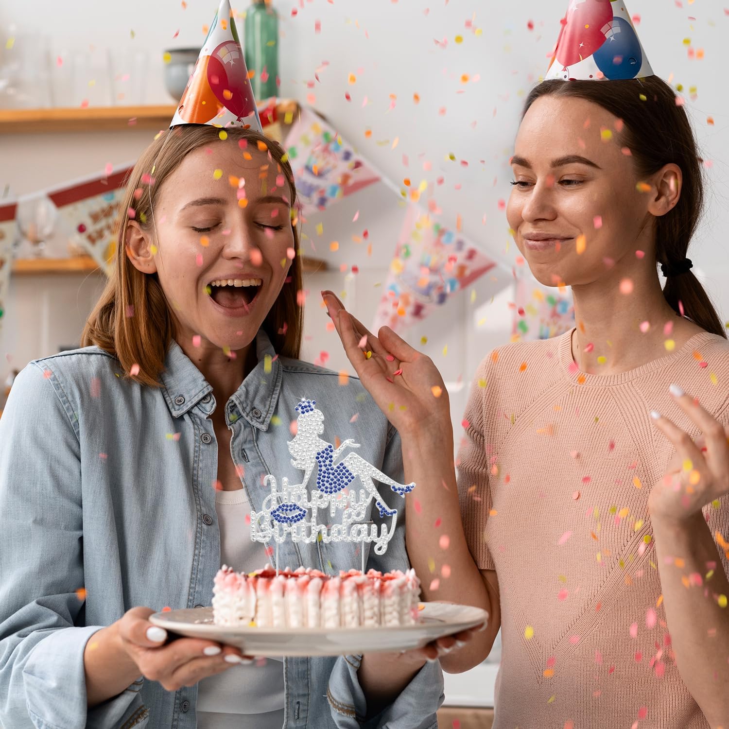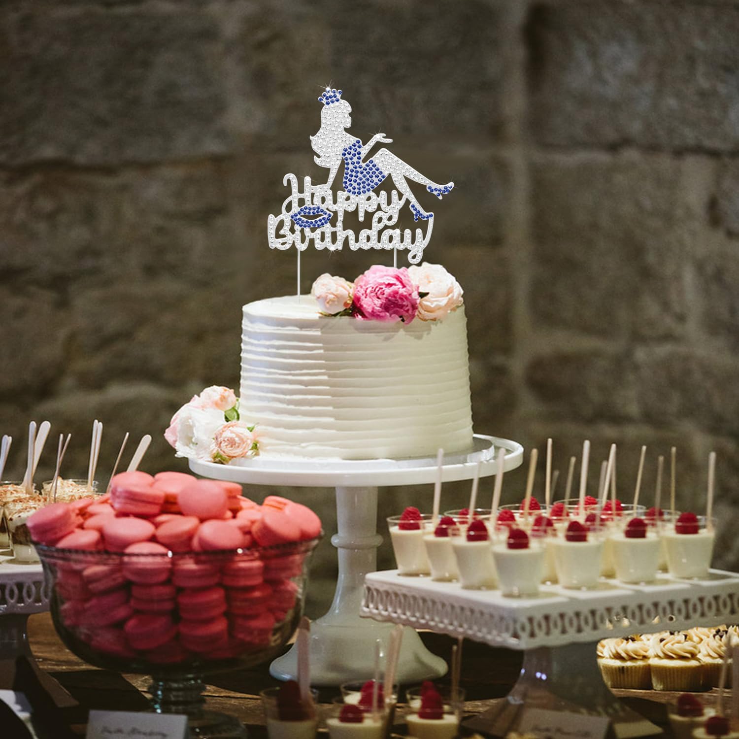 LINGTEER Happy Birthday Crown Queen Lady Rhinestone Cake Topper - Cheers to Makeup Spa Birthday Party Cake Centerpieces Decorations Gift Sign - Blue.