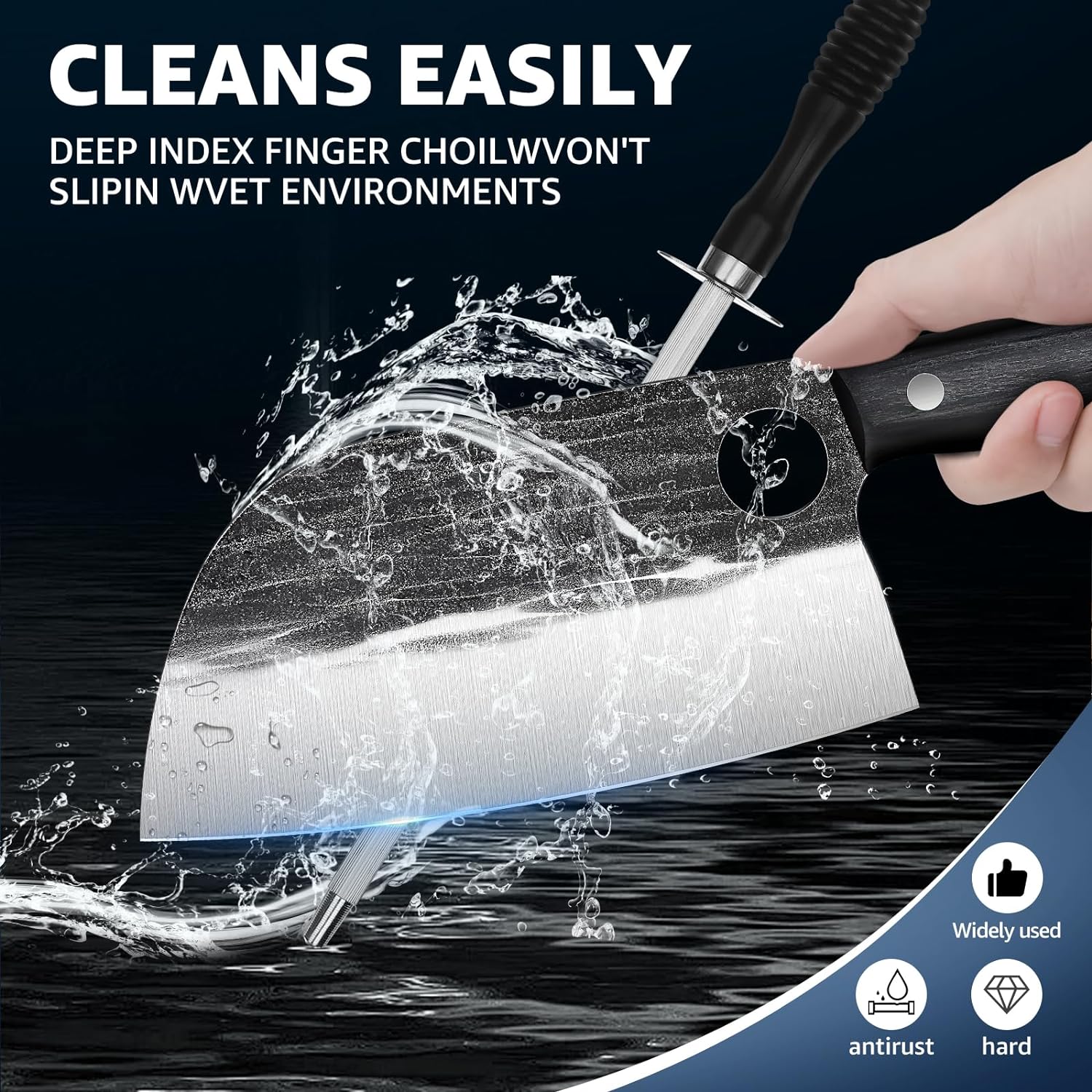 - 【chef knife set with Sharp Blades】: This professional Kitchen Knife Set is designed to meet the demands of cooking. Hand-polished 15~17 degree sharp blades effortlessly slice through various ingredients in the kitchen. The sleek hammered appearance and black coating on both sides of the blade not only add a stylish touch but also effectively prevent ingredients from sticking during cutting. The robust spine of the blade ensures powerful cutting capability.