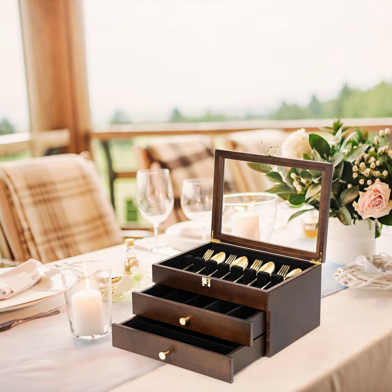 - Premium Silverware Organizer Case: Under the clear glass lid of this silverware organizer , all of your favorite silverwares are visible at a glance and well-protected from dust and provides plenty of space for organizing daily utensils or storing fine silverware that’s used for parties or special occasions.