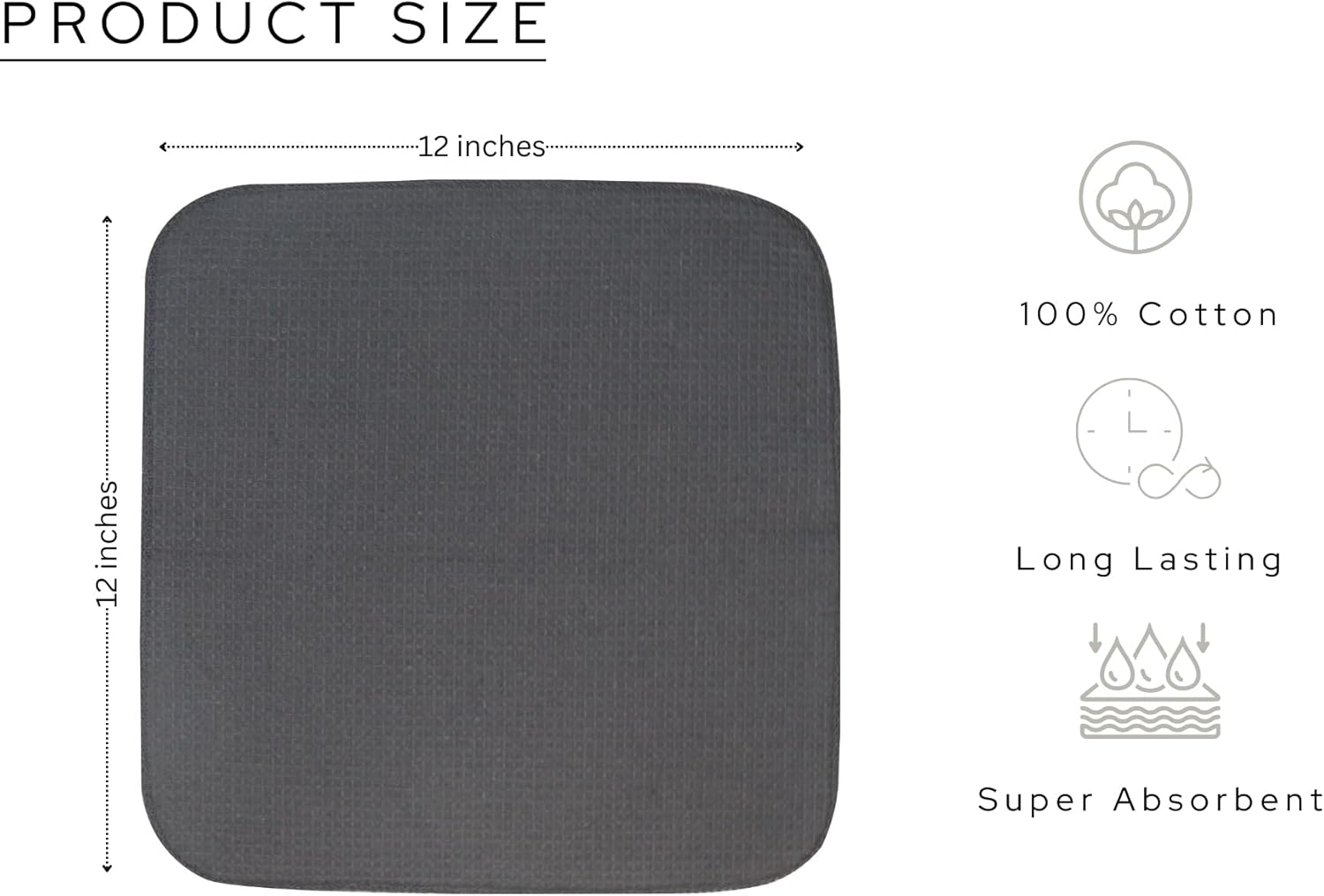 PurpleEssences Dish Cloths and Dish Rags - 8 Pack Waffle Weave Solid Kitchen Dish Wash Cloths, 100% Cotton, 12 x 12 Inches, Ultra Soft Absorbent Quick Drying - Spring Summer - Dark Grey