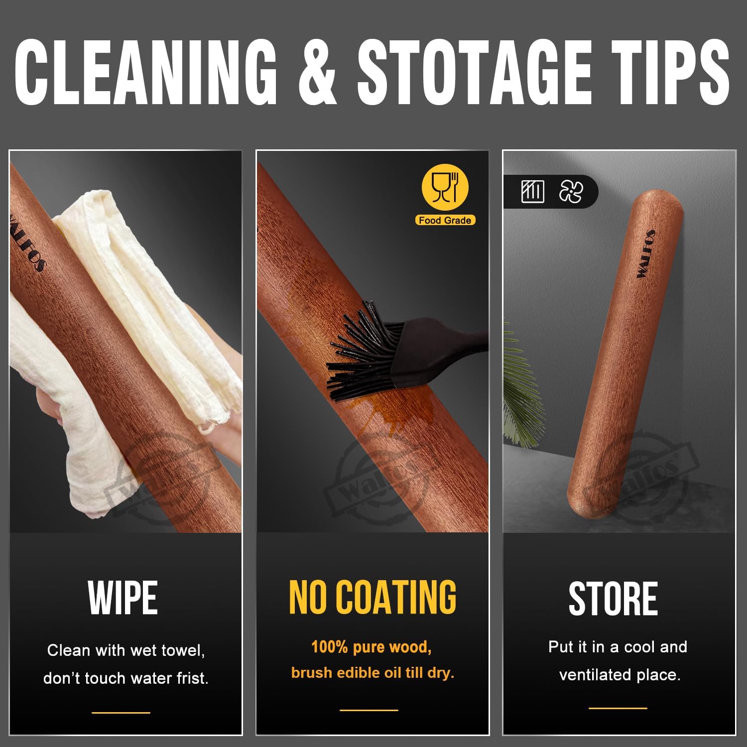 - 【SERVING GUARANTEE】 We have quality guarantee to our multi-purpose baking rolling pin and pastry mat. If you have any questions about our wooden rollers, please feel free to contact us. Walfos aims to make sure all our customers are satisfied with our product and brings all our customers a happy purchasing experience with our professional services. Don't hesitate to order safely and securely with Amazon Prime right now!