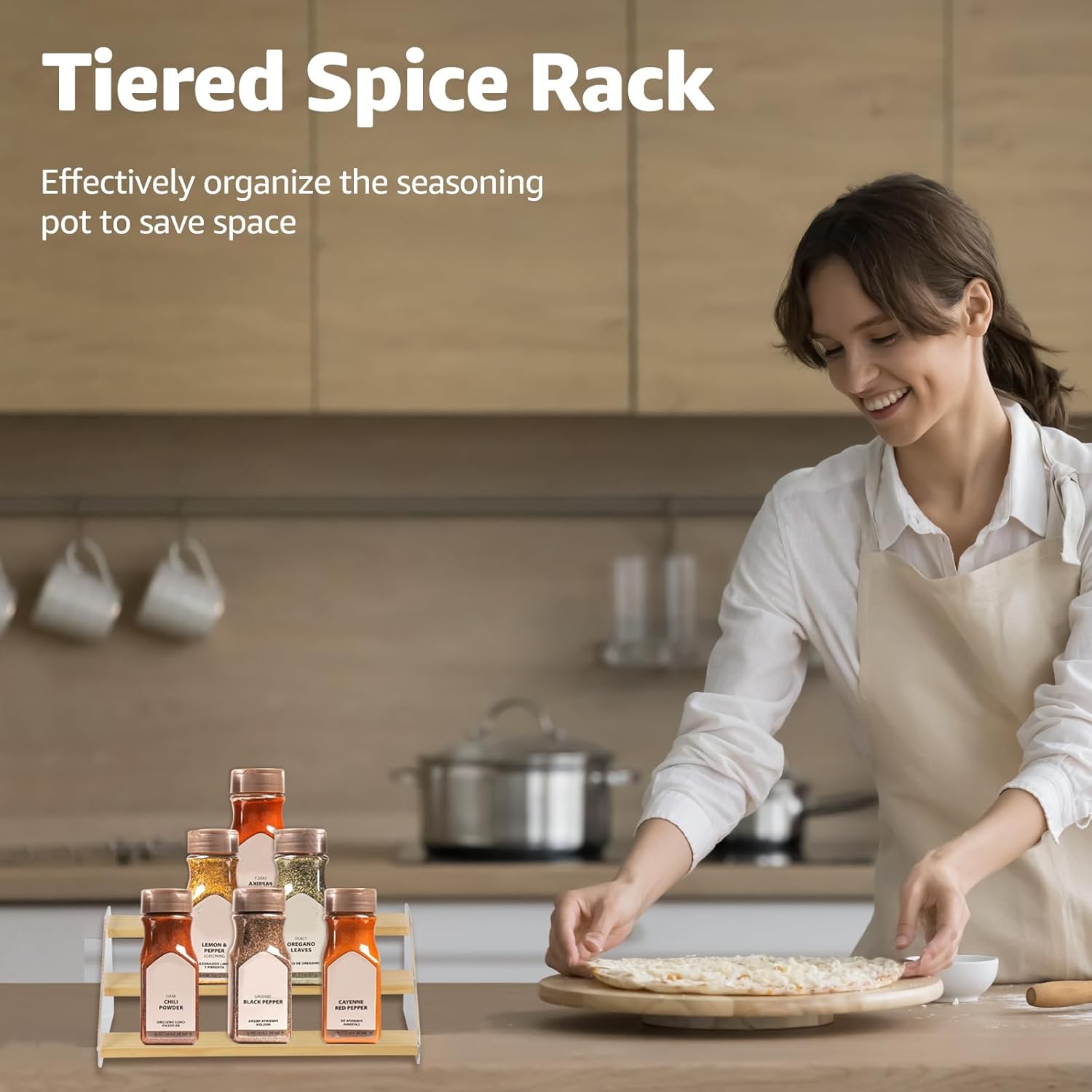 - Elegant & Sturdy: Risers display stands constructed from high-quality pine wood and corrugated acrylic, making it both aesthetically pleasing and fashionable, as well as durable and resistant to deformation, the spice shelf is a beautiful and robust addition to any space