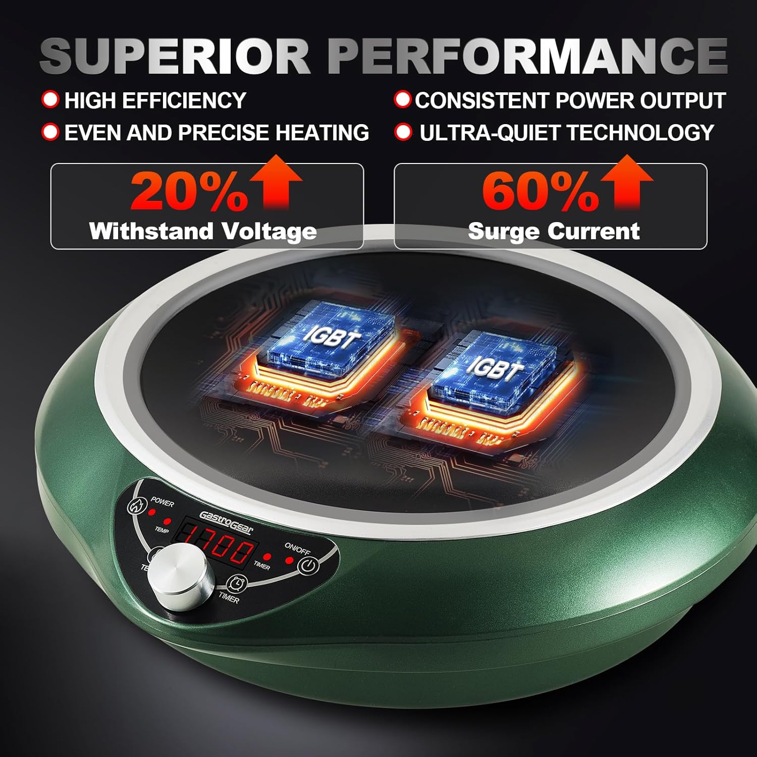 Induction Wok Pan Cooktop 1700W (85V~175V) 16 Levels Temperature & Power Control Induction Wok Burner with 18 Hours Timer, Auto-off, Fast & Even Heating Concave Electric Stove (Green)