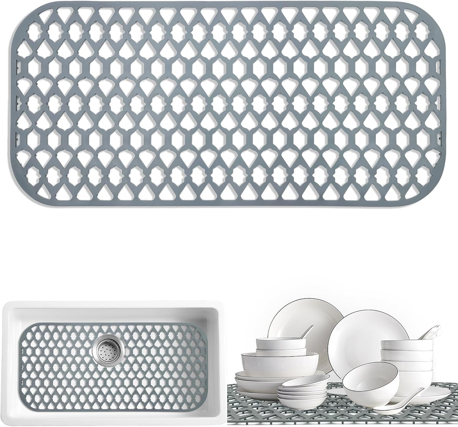 - Large Size & Flexiable - The size of our silicone sink mat is 30 ×14 inches. The silicone sink mat is flexiable that easy to fit the bottom of the kitchen sink. The silicone sink mat not only can be sink protectors for kitchen sink, but also can be a drying mat or dish mat. It is an essential item for the daily cleaning of the kitchen.