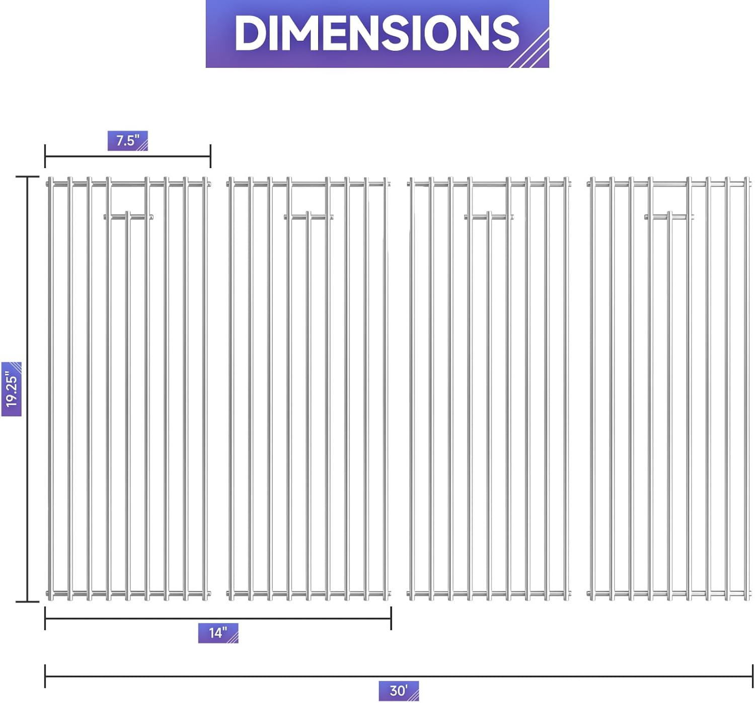 - Dimensions: 19.25 x 7.5 inches for each grill grate, Fits Most Models Overall Size: 19.25" x 30",set of 4, Make sure you measure the size of your original parts and compare with ours BEFORE you order