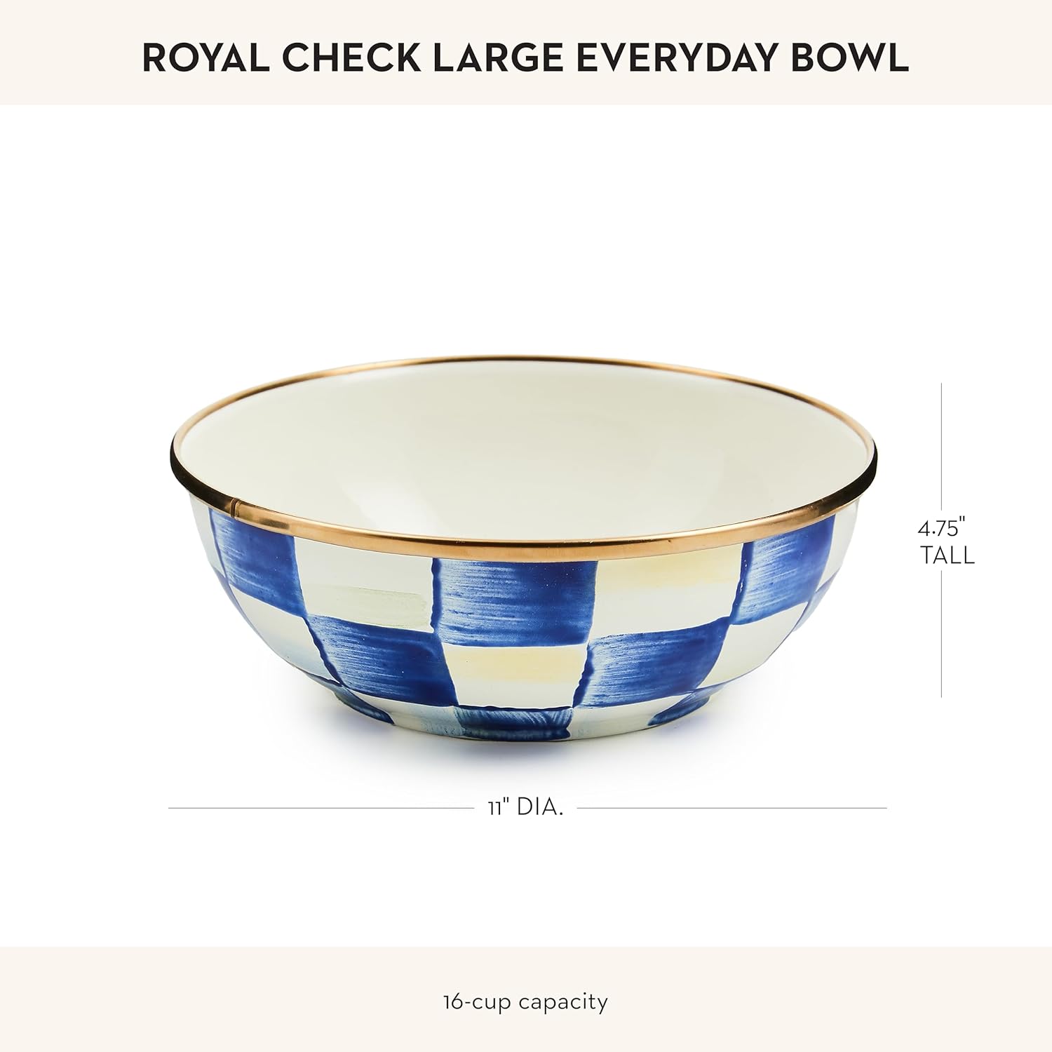 MACKENZIE-CHILDS Enamel Everyday Bowl, Serving Bowl for Entertaining, Large, Blue-and-White Royal Check