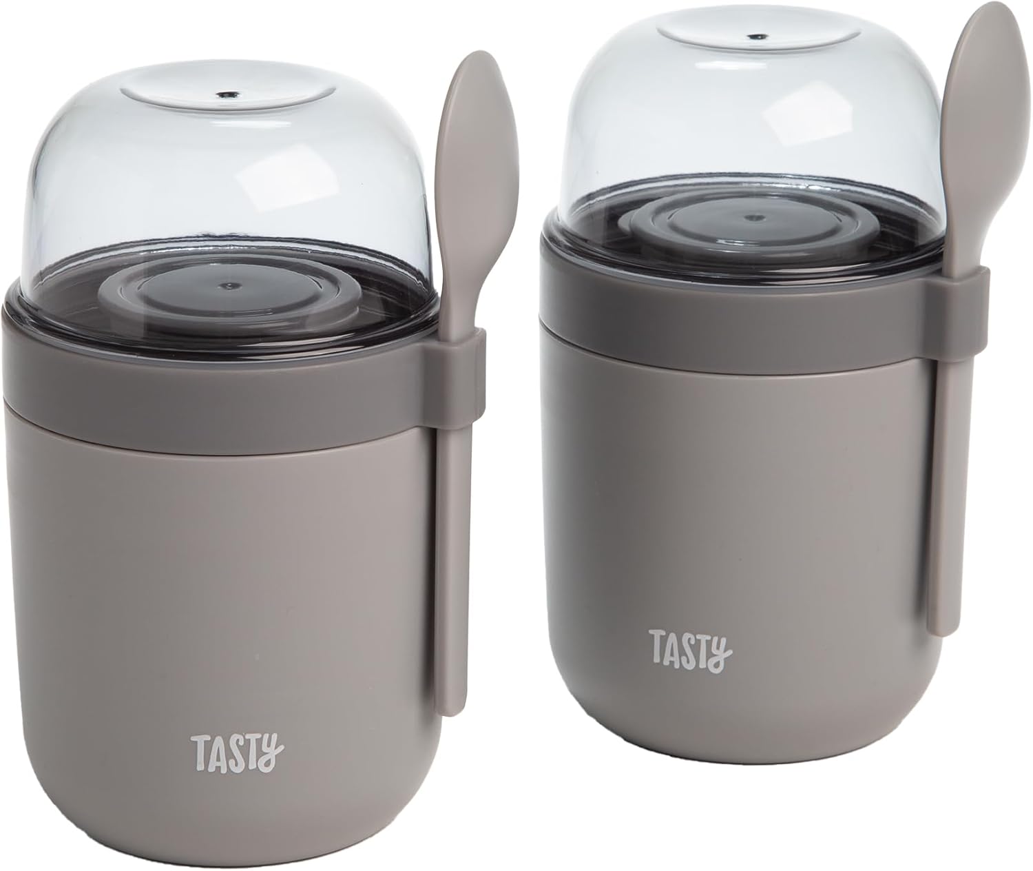 Tasty Travel Snack Cups with Spoons, On-The-Go Snacking, Divided Compartments, Great for Nuts, Cereal, Granola, Yogurt and More, Made Without BPA, 2-Pack, Gray