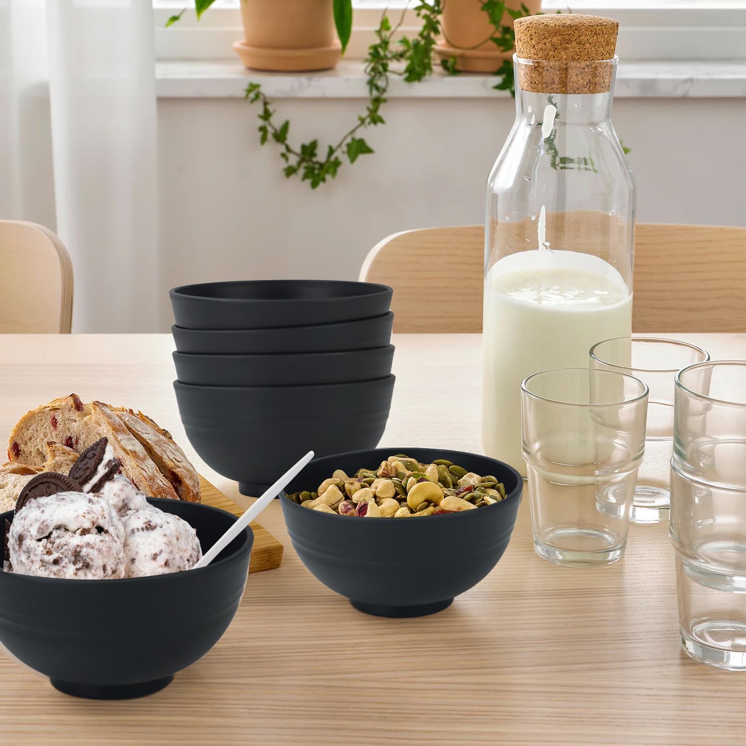 wheat straw snack bowls 10oz set of 8 - Unbreakable Dessert Bowls for kids - Mini Bowls for Ice Cream,Snack and Fruits - Microwave & Dishwasher Safe Appetizer Bowl Sets - Black