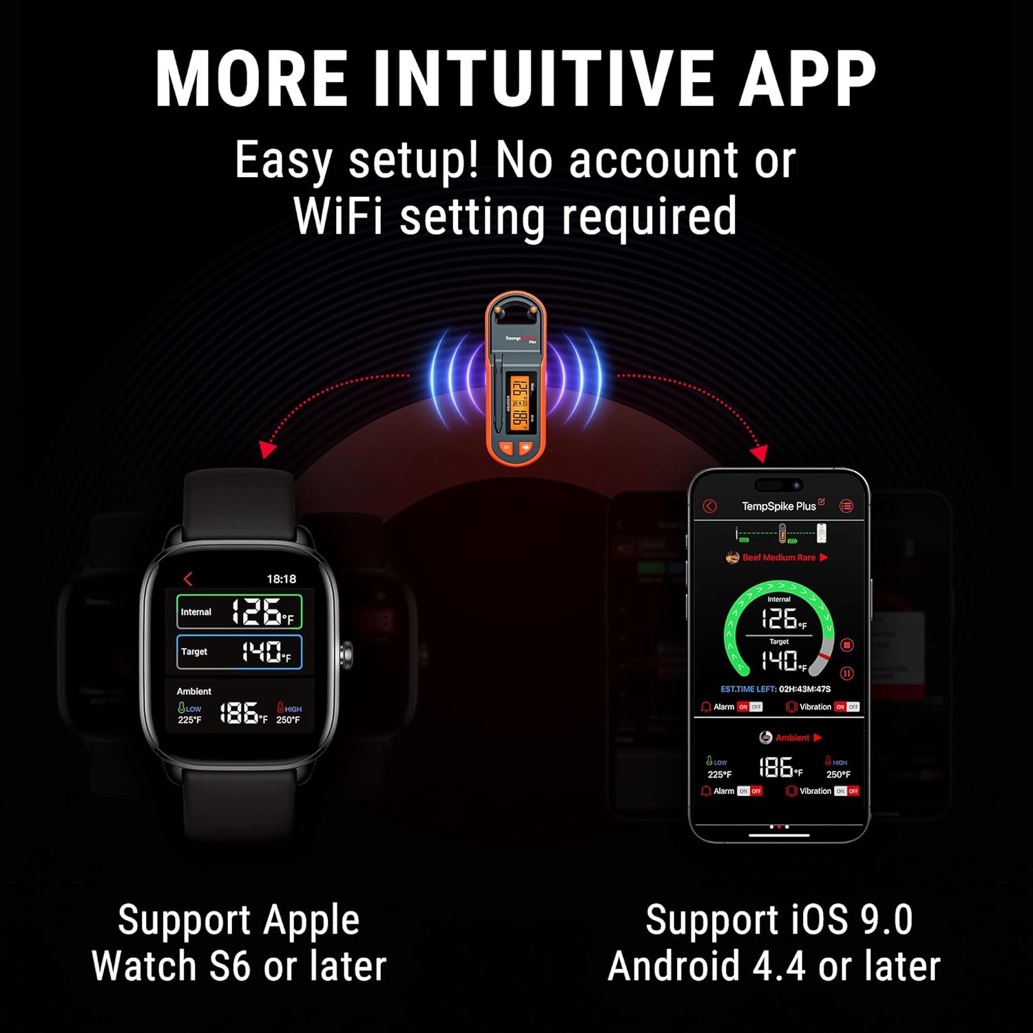 - ăHassle-Free SetupăNo account or WiFi needed! Pre-paired with Bluetooth, This Bluetooth meat thermometer wireless comes already Bluetooth paired and ready to use right out of the box, making it an easy, thoughtful gift option for any grillmaster