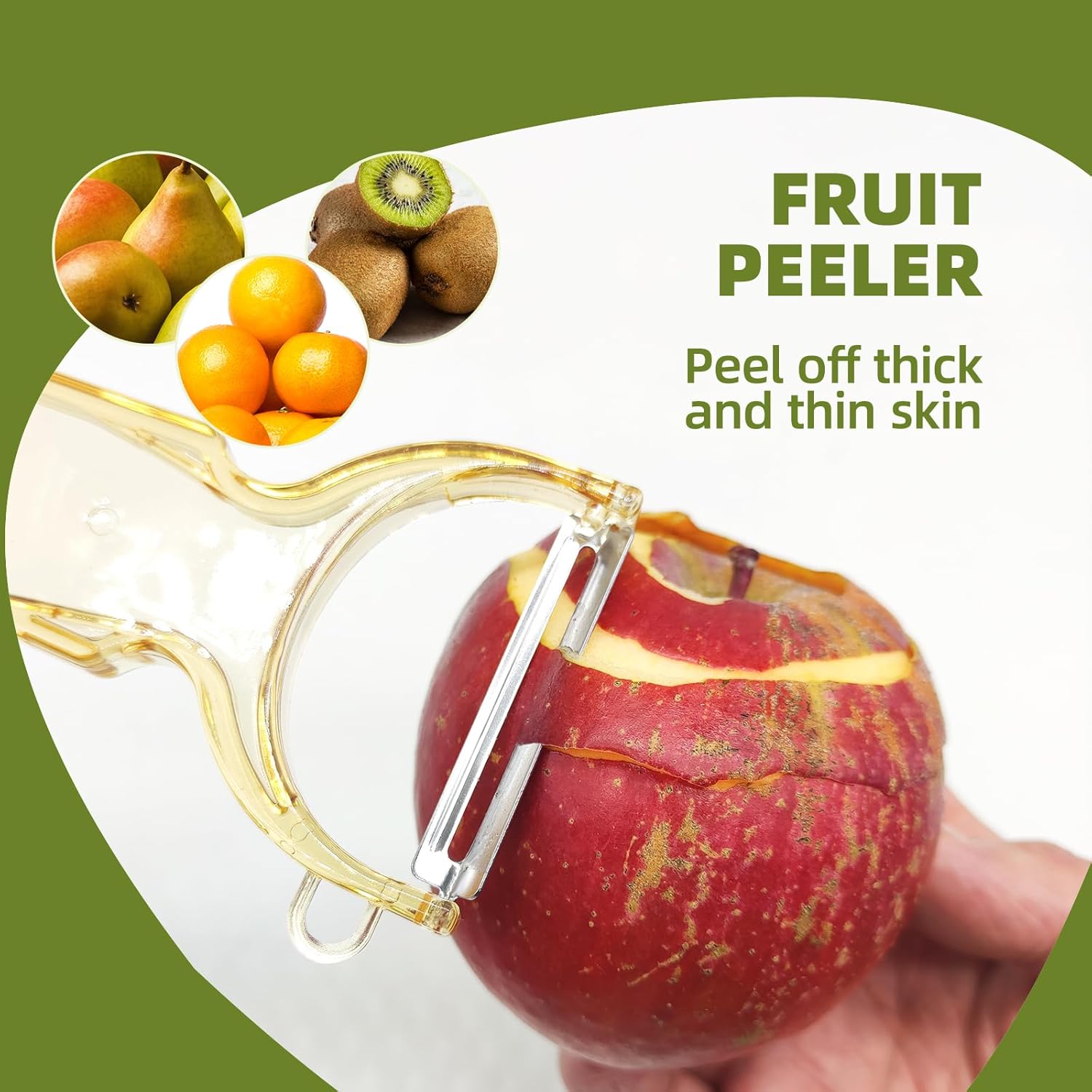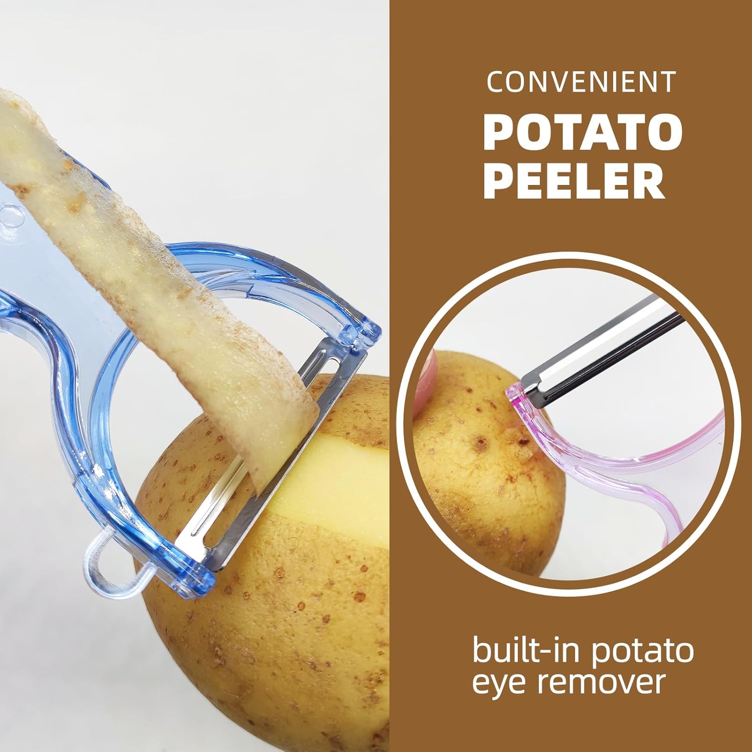 - đ ă3-Pack Fruit Vegetable Peelers for Kitchenă It is the best P potato peelers for apple,peaches, tomatoes, zucchini,vegetables,potatoes, cucumbers, squash, carrots, eggplant,pears.With built-in potato eye remover, it is a high quality kitchen potato peeler, however, it may not be ideal for produce with softer skins such as oranges and corn.