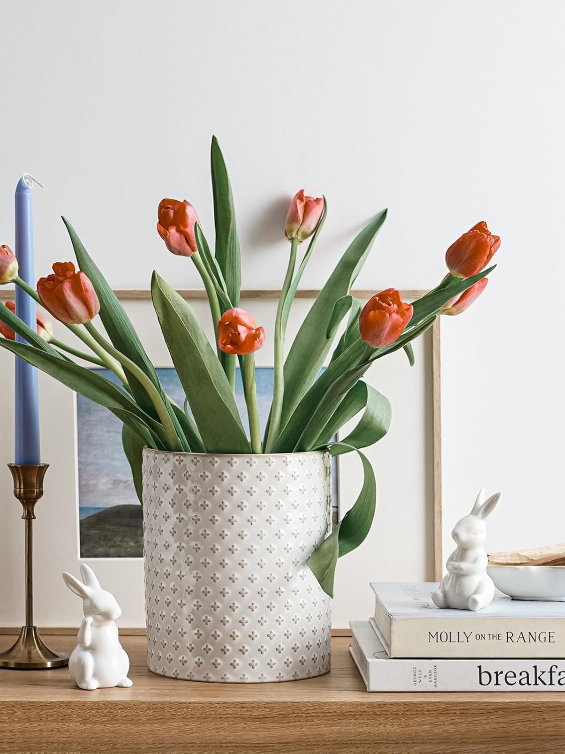 - Embossed Design: With its classic white ceramic decorated in expressive embossment, this farmhouse-style kitchen utensil holder will infuse warmth and vitality into your home. Embossed design is elegant yet not flashy, which suits various kitchen styles, making it the perfect addition to your countertop
