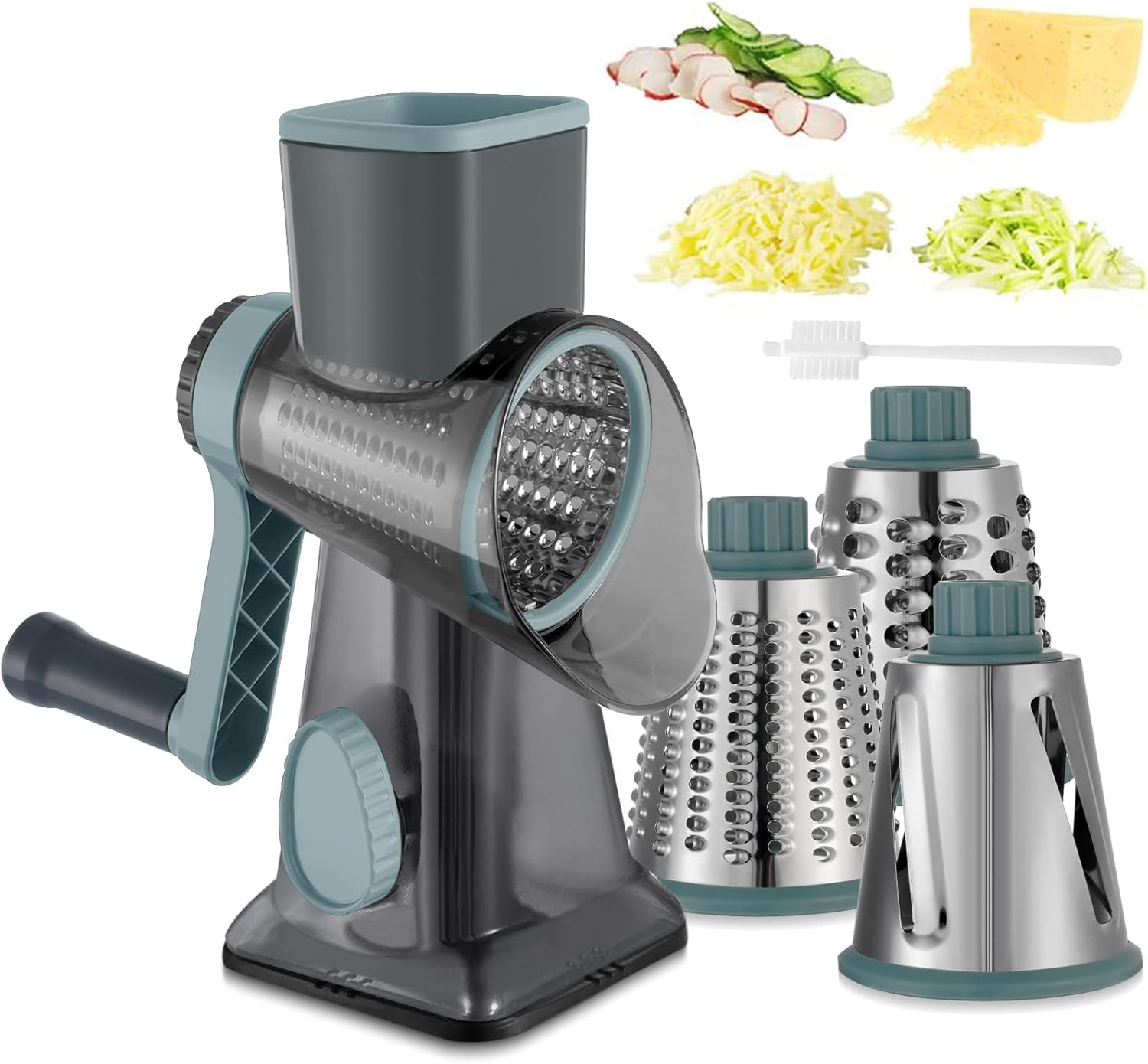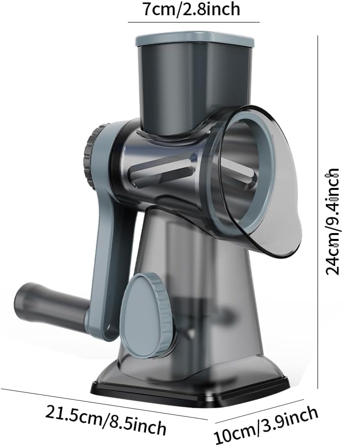 - 3 IN 1 cheese shredder: Equipped with three drum blades,these are crafted from high-quality stainless steel,make slicing, shredding and grinding easy, and can handle a variety of ingredients, including all types of cheese, vegetables, nuts, and more. Three interchangeable blades can meet daily needs