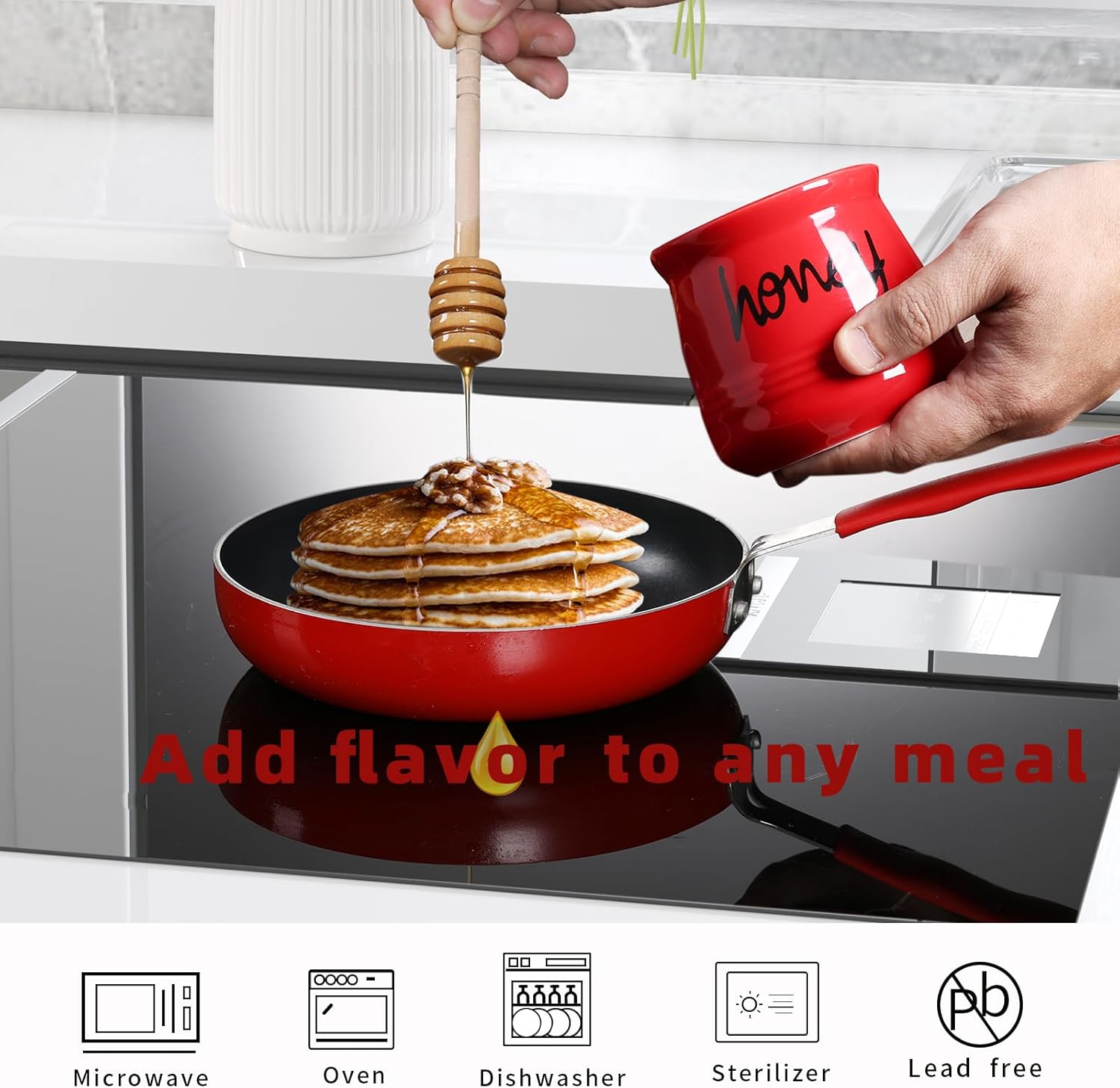ONTUBE Honey Jar with Dipper and Lid, Ceramic Honey Pot 12oz (Red)