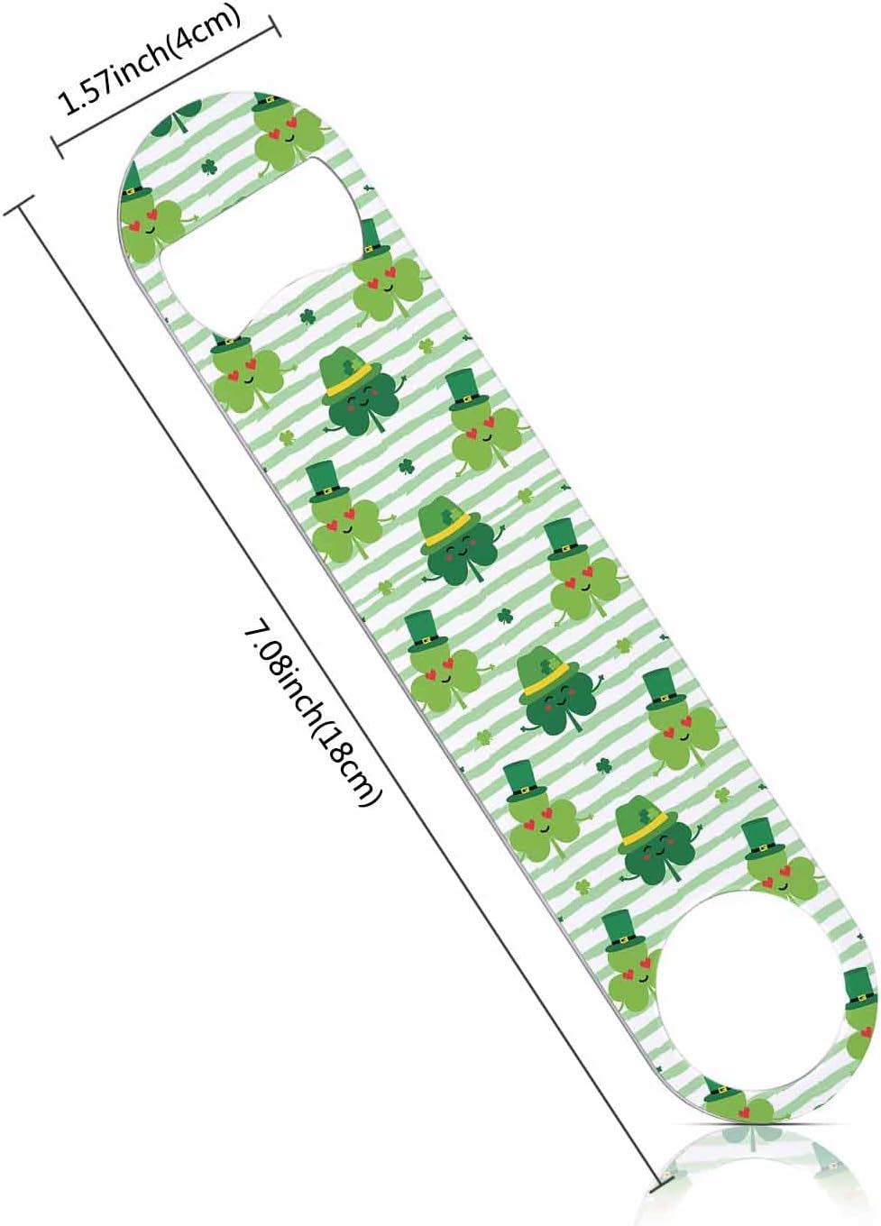 Clovers Stainless Steel Bottle Opener Shamrock and Green Leprechaun Hats Saint Patrick's Day Striped Pattern Flat Beer Bottle Opener Keychain for Home Kitchen Bar Restaurant Party Gift