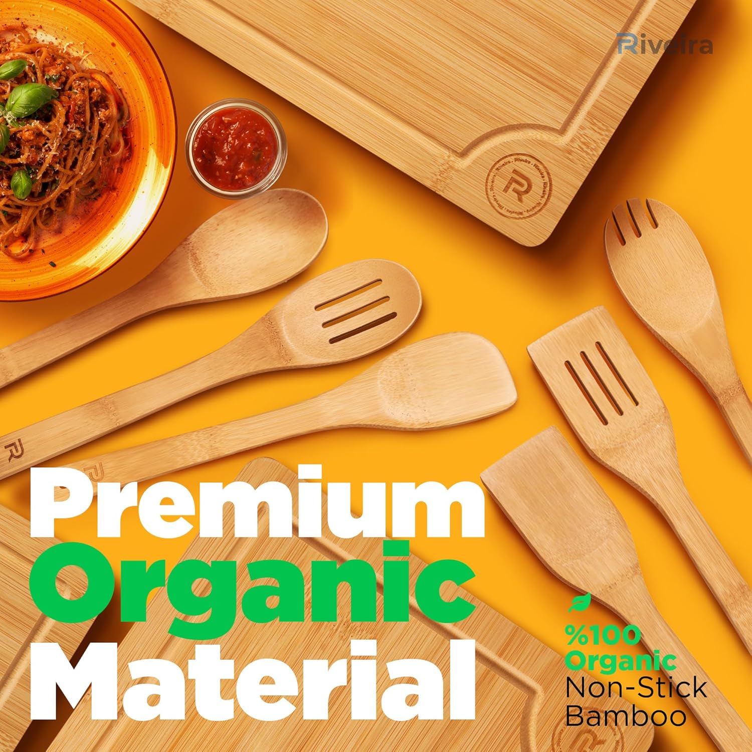 - Complete Kitchen Set — Enhance your culinary experience with the Riveira Bamboo Cutting Boards for kitchen. This set includes 3 versatile chopping boards and 6 wooden spoons for cooking, offering a comprehensive collection of wooden utensils. Perfect for all your food prep needs, these cutting boards for kitchen are durable, eco-friendly, and essential for any kitchen.