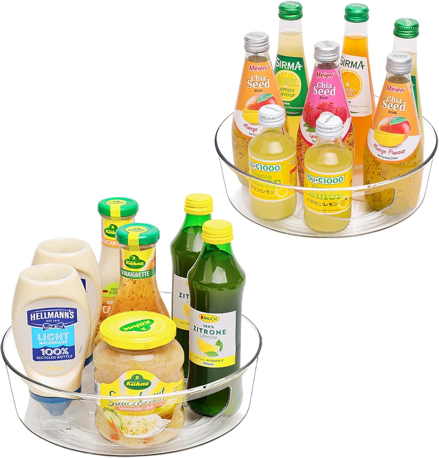GUZON 2 Pack Lazy Susan Turntable for Cabinet, 10 Inch Lazy Susan Organizer with Handles and High Sides, Clear Rotating Organizer for Kitchen, Pantry, Dresser, Refrigerator, Bathroom, Table, Fridge