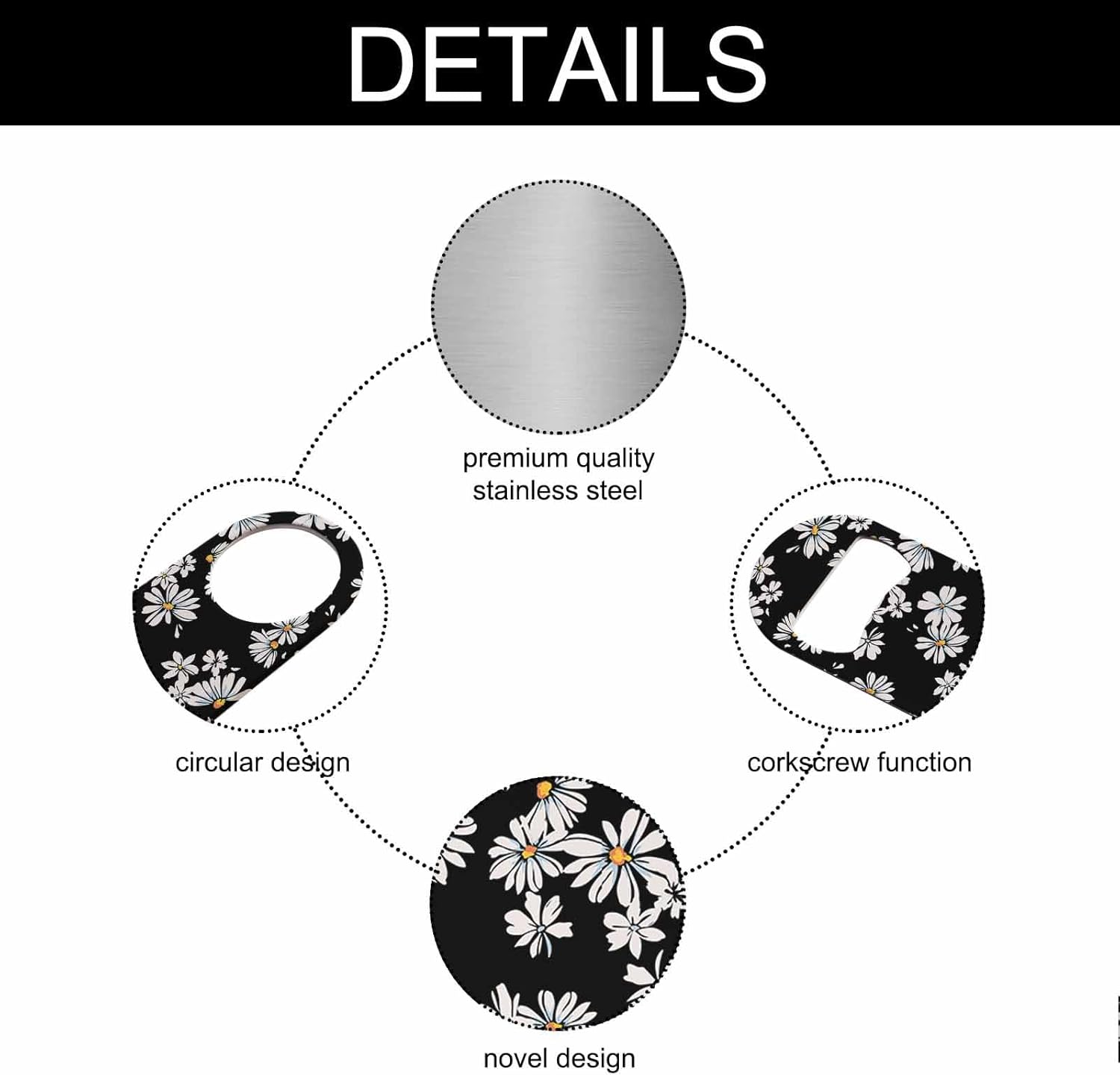 - Premium Material: Our daisy print bottle opener is made of stainless steel, sturdy for long-term use.
