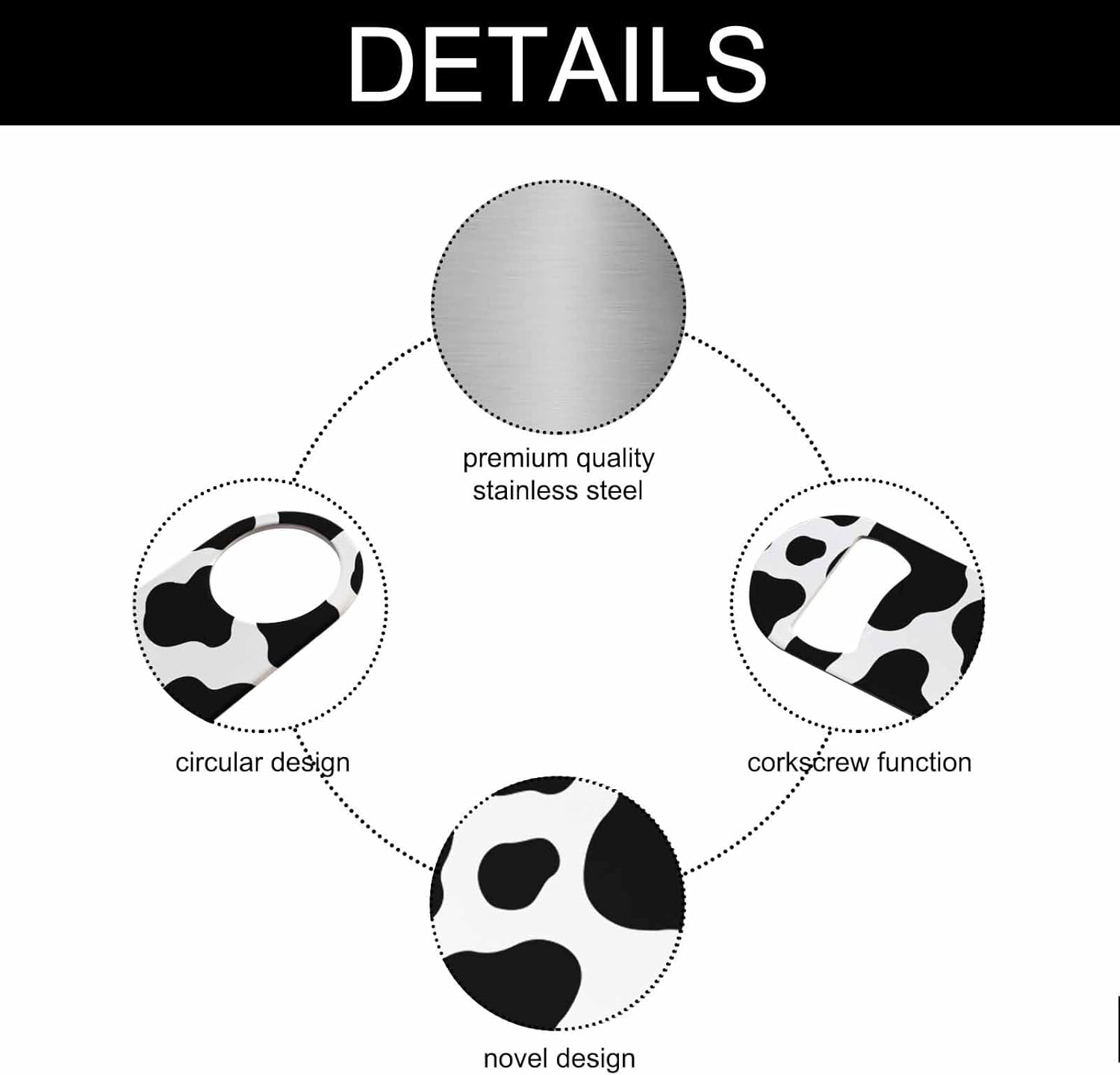 - Premium Material: Our cow texture bottle opener is made of stainless steel, sturdy for long-term use.