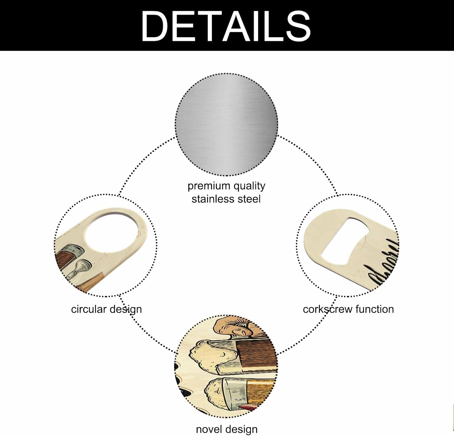 - Unique Design: Beer bottle opener is printed with double-sided printing, with multiple and interesting styles, no longer monotonous. The bottle opener is lightweight and portable, and has a round hole at the bottom of the handle for hanging, making it easy to store.
