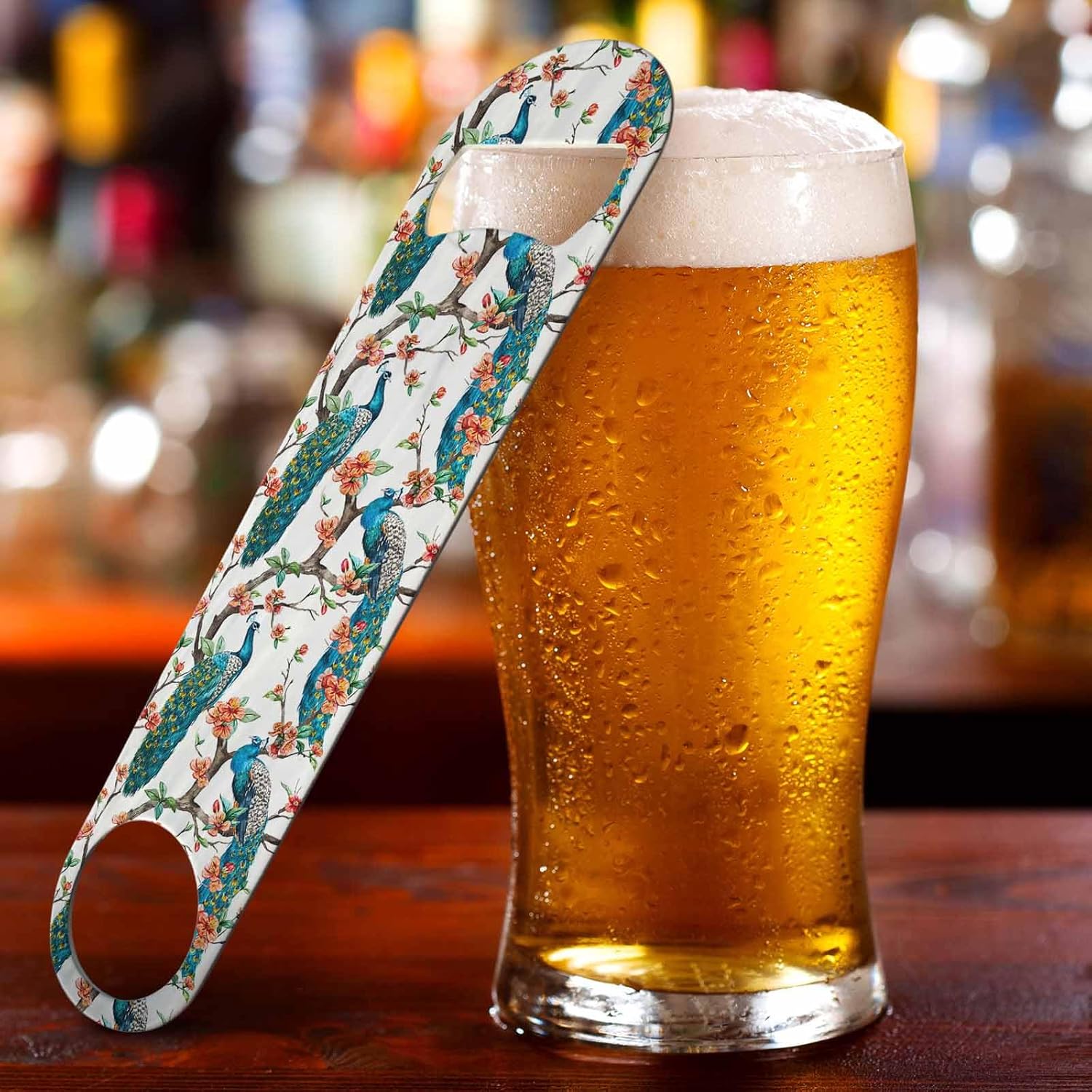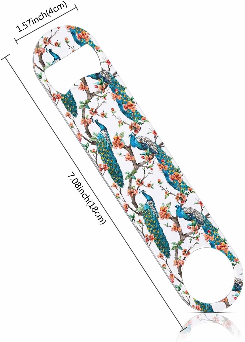 Watercolor Peacock Stainless Steel Bottle Opener Flowering Cherry Trees Art Bird Feather Pattern Exotic Flat Beer Bottle Opener Keychain for Home Kitchen Bar Restaurant Party Birthday Gift