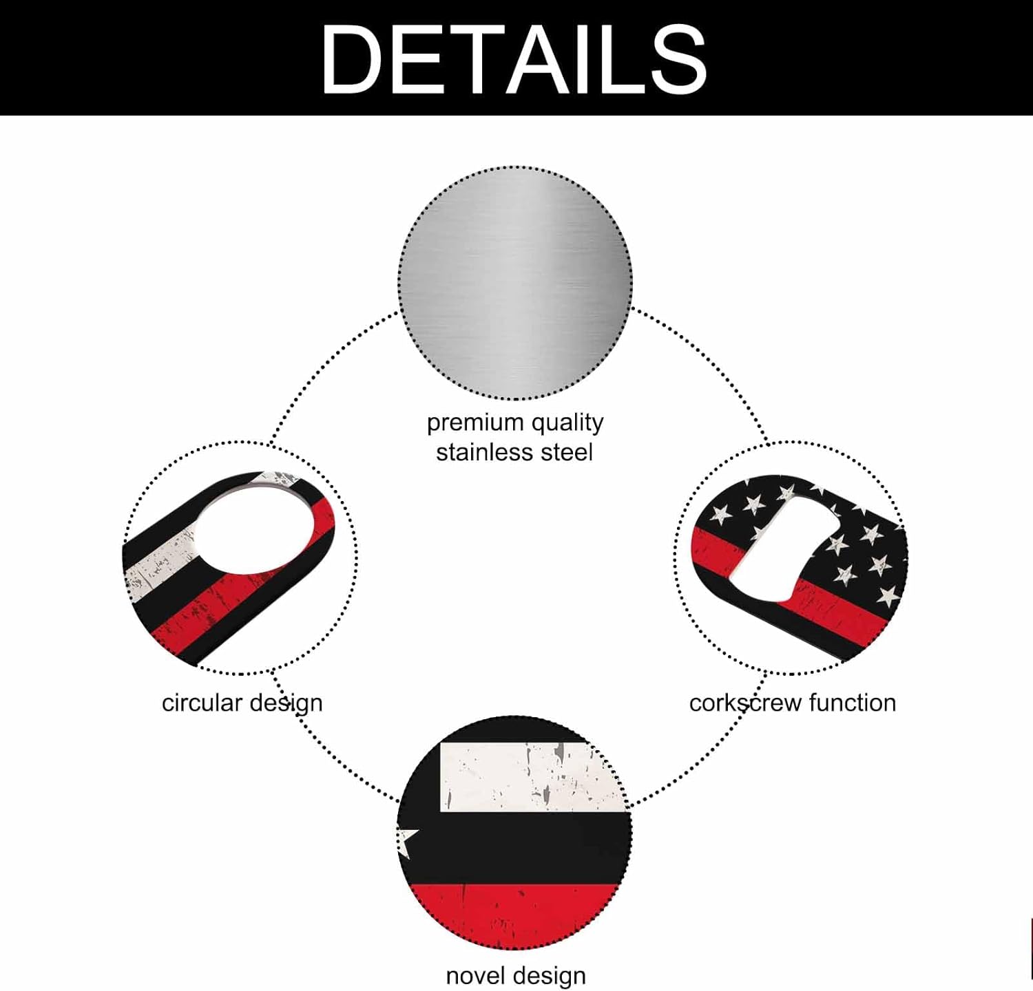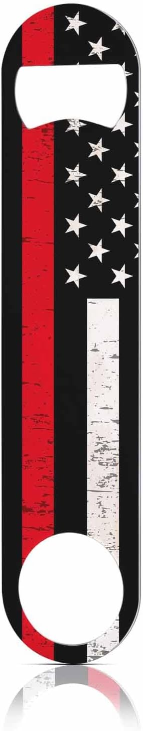 USA Flag Stainless Steel Bottle Opener American Flag Symbolic of Support for Firefighters Red Line Flat Beer Bottle Opener Keychain for Home Kitchen Bar Restaurant Party Birthday Gift