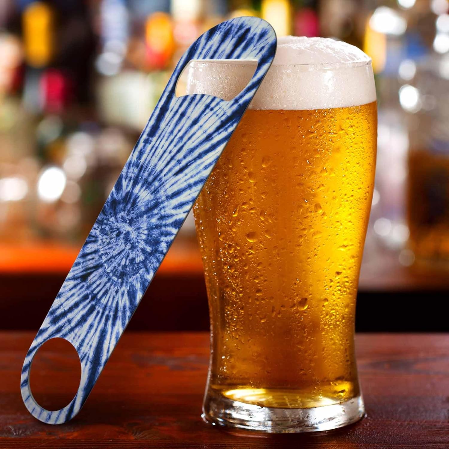 Tie Dye Pattern Stainless Steel Bottle Opener Dark Blue White Spiral Circle Swirl Batik Flat Beer Bottle Opener Keychain for Home Kitchen Bar Restaurant Party Birthday Gift