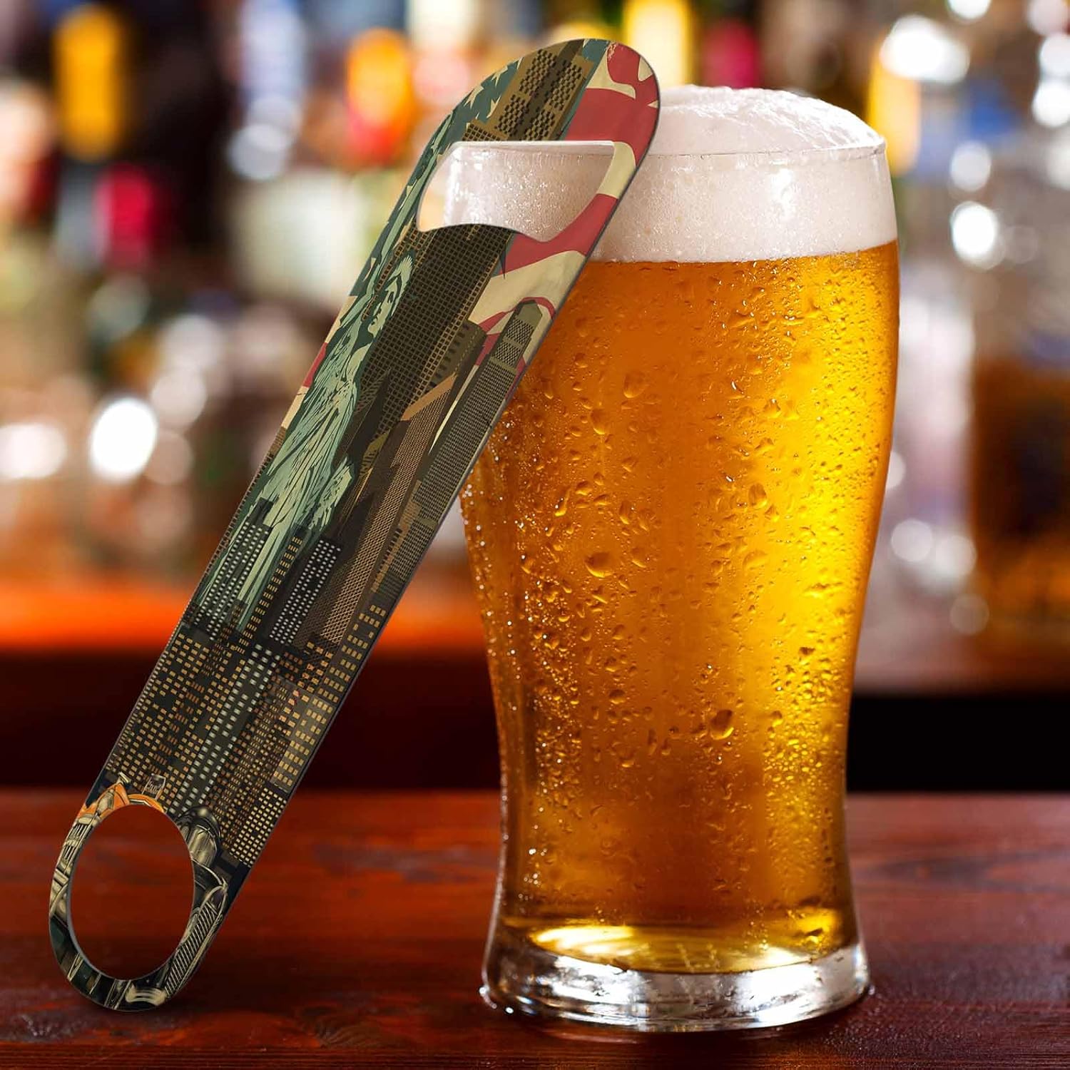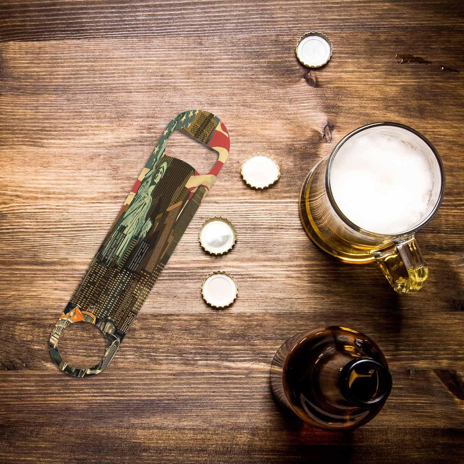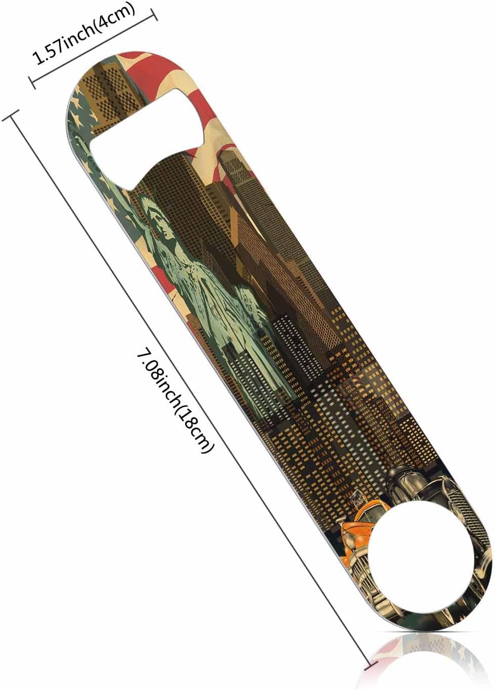 Vintage America Flag Stainless Steel Bottle Opener Auto Skyscraper Travel Freedom Landmark Flat Beer Bottle Opener Keychain for Home Kitchen Bar Restaurant Party Birthday Gift