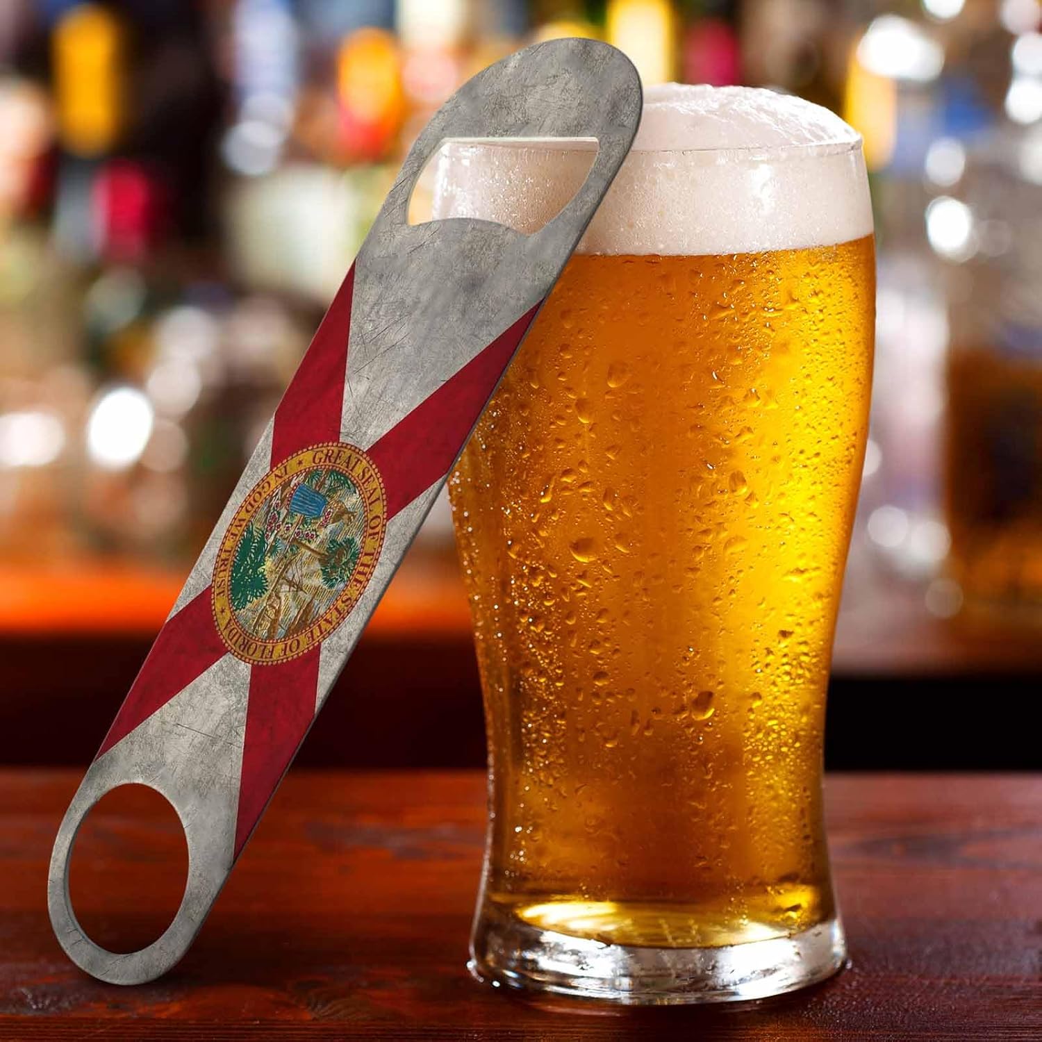 Florida State Flag Stainless Steel Bottle Opener Dirty Florida 3D Waving Flag Flat Beer Bottle Opener Keychain for Home Kitchen Bar Restaurant Party Birthday Gift