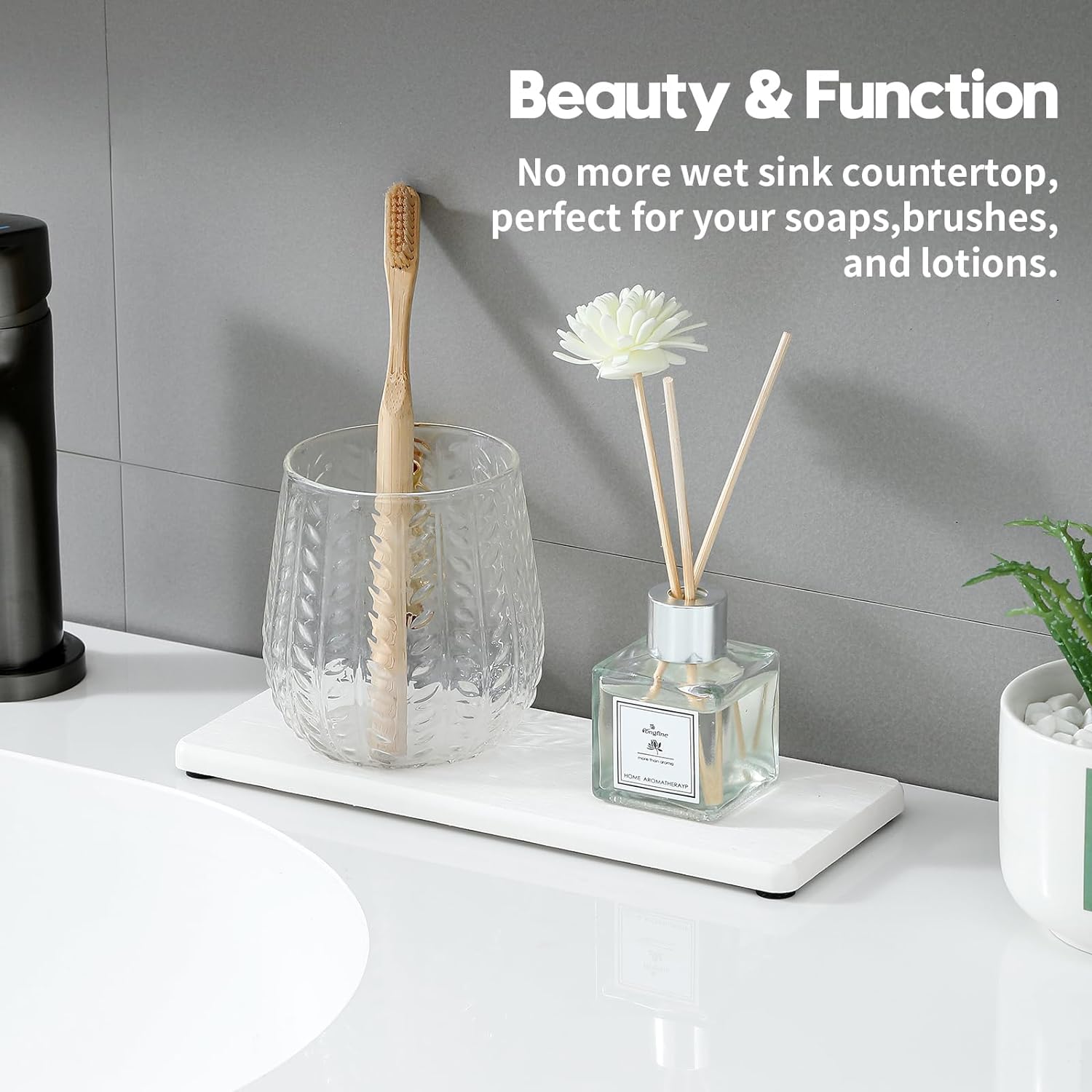 - 【Eco-Chic Design】A minimal and sophisticated look that matches seamlessly with any decor. Modern design with three simple straight lines, perfect for your kitchen or bathroom. You can put it on the table or by the sink countertop