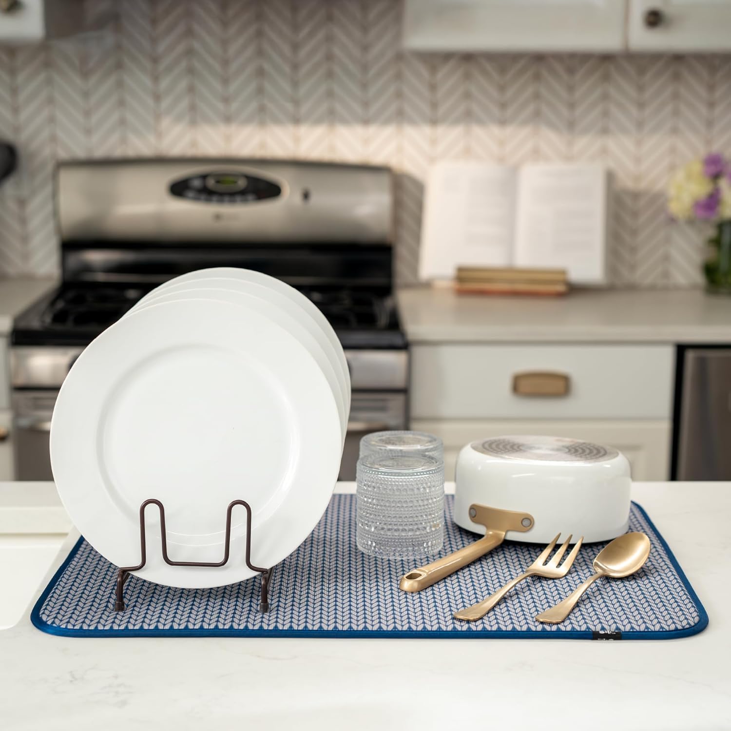 - Dish drying mats for kitchen counter are reusable, machine washable, and easy to store for kitchen organization; durable construction will not chip or break like a stone dish drying mat for kitchen