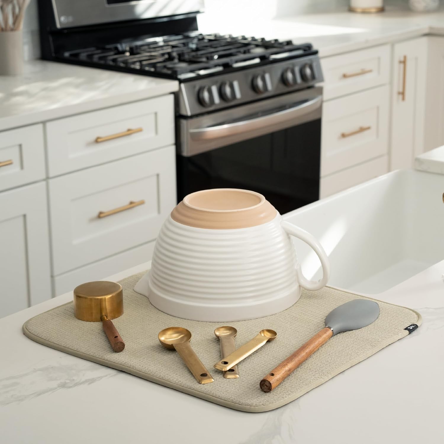 S&T INC. Dish Drying Mat, 16” x 18”, Absorbent Microfiber Kitchen Counter Mat, Dish Drying Pad for Dishes, Utensils, Pots and Pans, Large, Pure Cashmere