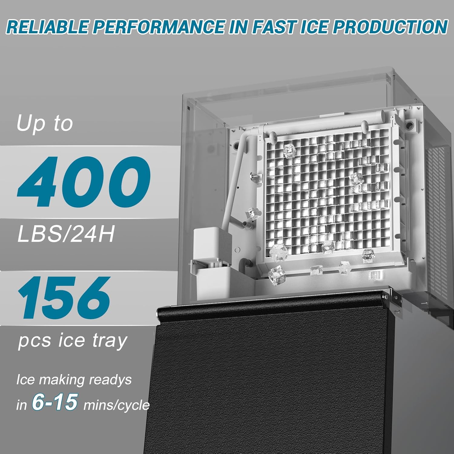 High-Performance Commercial Ice Maker Machine: 500lbs/24H Production, 350lbs Storage, 156 Ice Cubes in 6-15 Mins - Stainless Steel Industrial Ice Maker for Restaurant, Bar, Cafe, Commercial Use