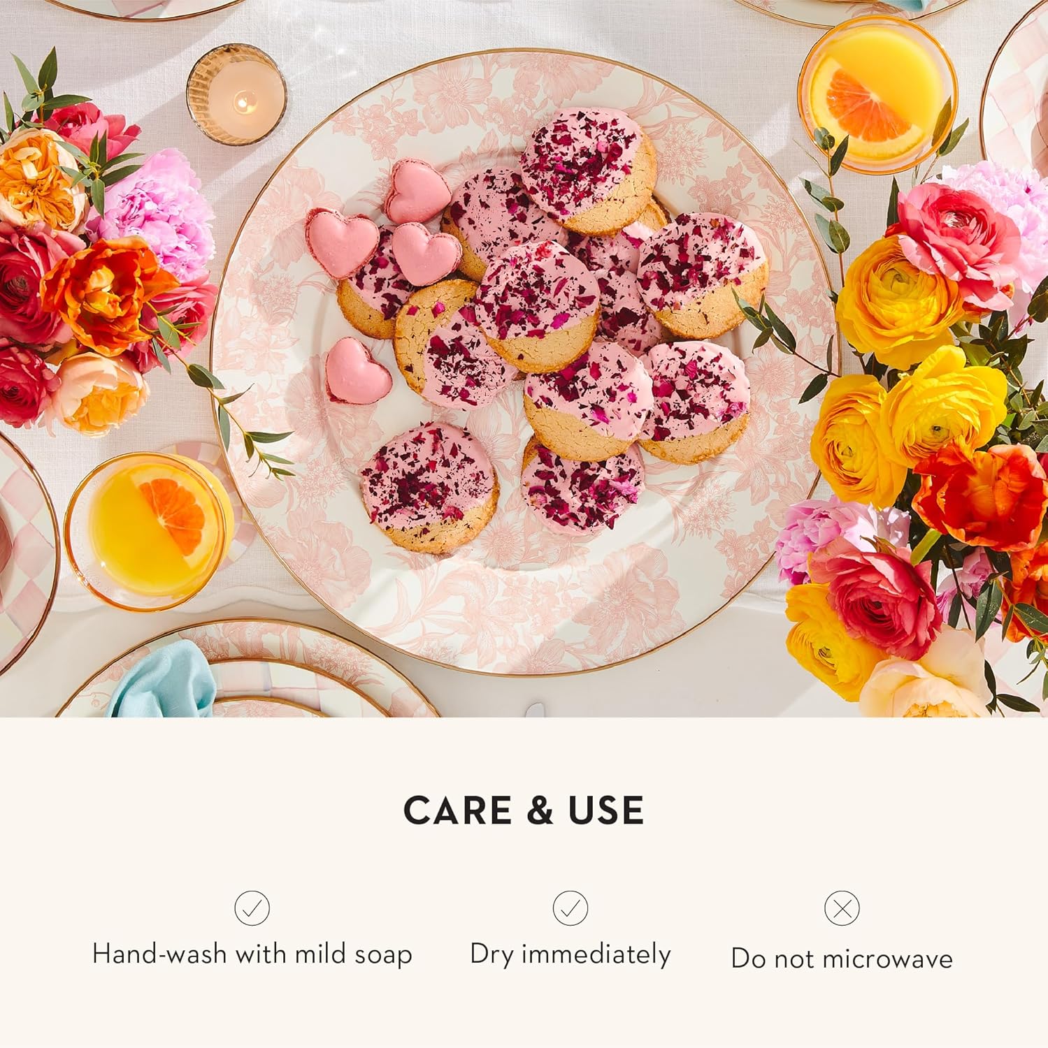 MACKENZIE-CHILDS Enamel Serving Platter, Decorative Serving Platter for Food, 16 Inches, Rosy English Garden