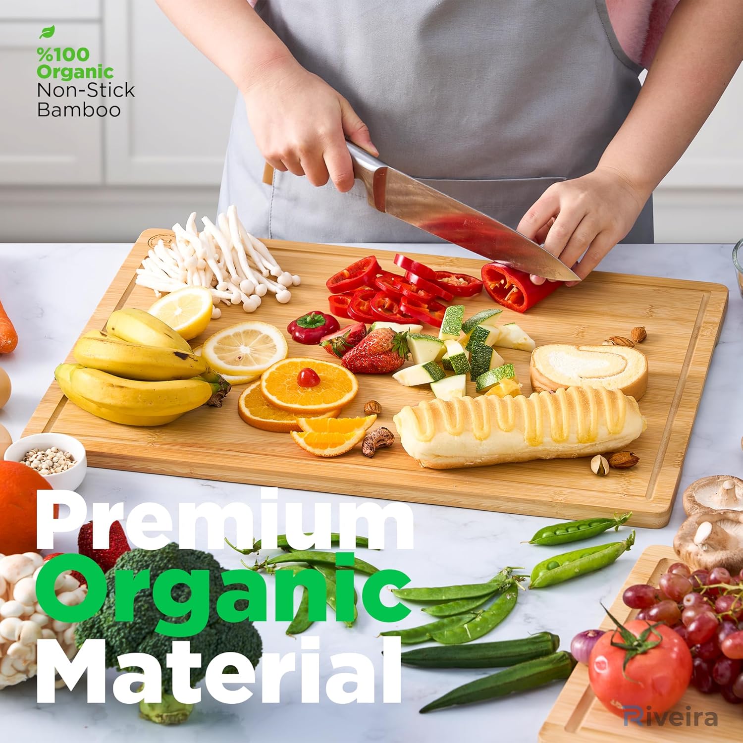Riveira Cutting Boards For Kitchen – Gourmet Bamboo Grandeur: 20 x 14 Inches Bamboo Wood Cutting Board – Natural Non Toxic Cutting Board – Innovative Juice Grooves Wood Cutting Boards For Kitchen