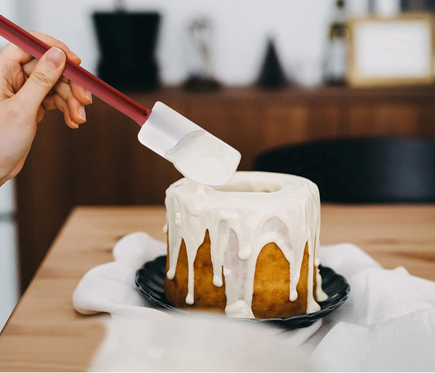 - PERFECTLY SHAPED: With long handles and soft thin edges, these silicone spatulas have perfect amount of flex to nicely contour to the curves of your bowls. The head blade has enough bounce and flexibility to conform to the inner shape of bowls, able to smooth out any inconsistencies while you press the blade. Professionally designed, they reach into all the nooks and crannies to scrape out every last bit of your culinary creation.