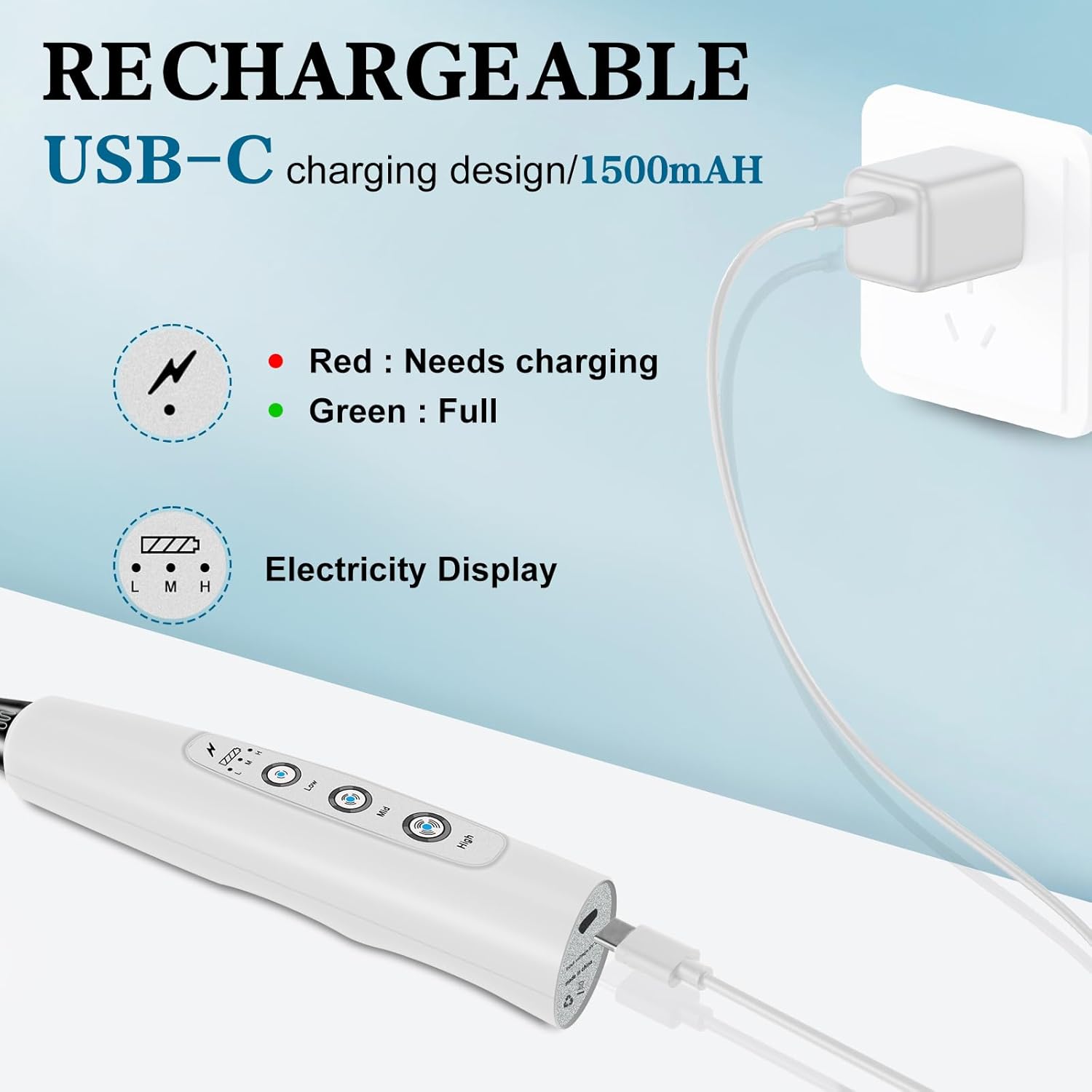 - USB-C Charging Long Battery Life: Our electric frother wand adopts USB charging design, which is more environmentally friendly and lighter than the battery type, allowing you to charge it anytime and anywhere. It can be used at home, in the office, or even taken out for camping. The built-in battery capacity is 1200mAh, which can be used several times a day after being fully charged. This drink mixer handheld also includes a charging indicator light that lights up red when charging and green when fully charged.