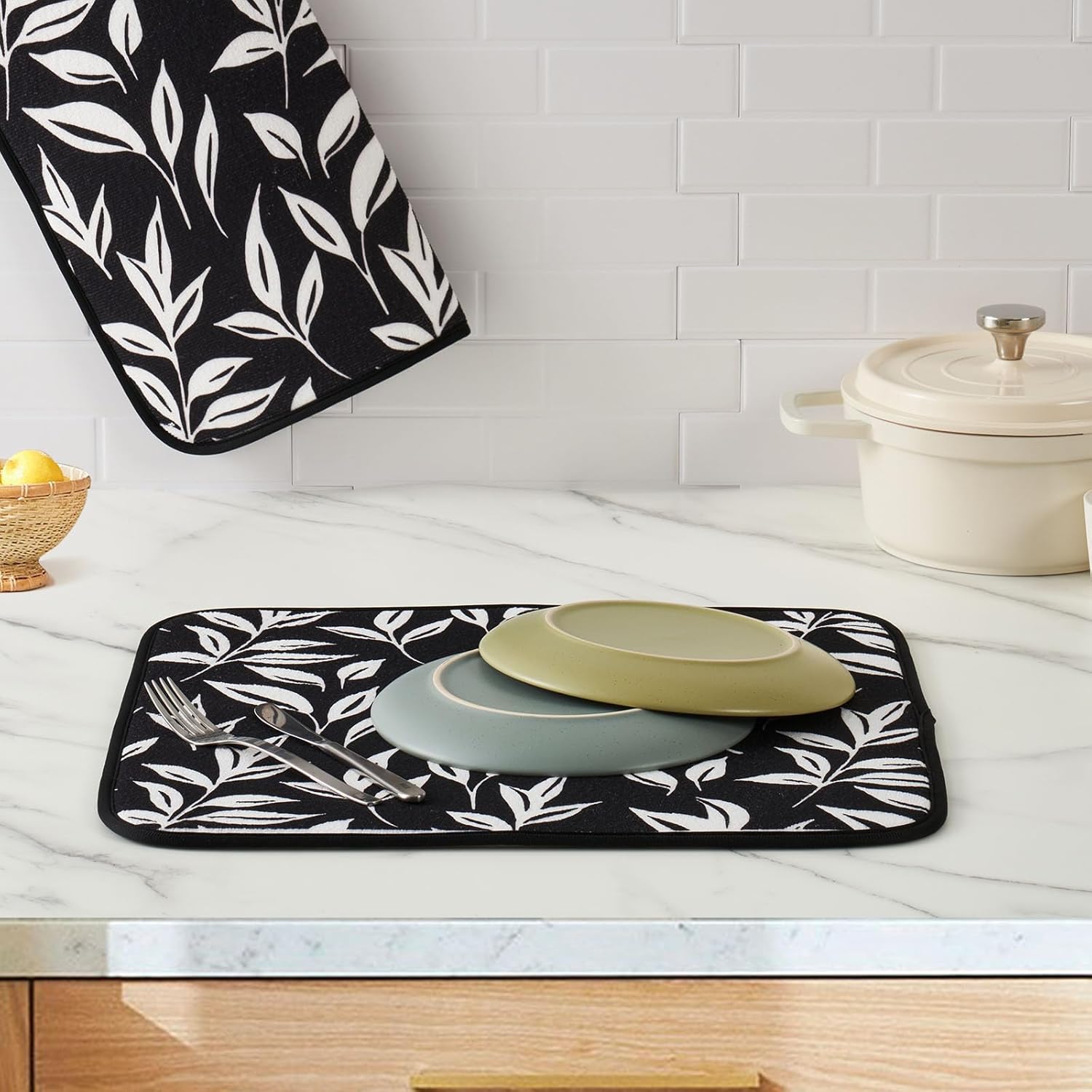 FRESHMINT Printed Dish Drying Mats for Kitchen Counter 2 Pack Absorbent Reversible Drying Mats Microfiber Kitchen Countertop Protector Dishes Drying Pad Extra Large 18"x24" Dish Mat