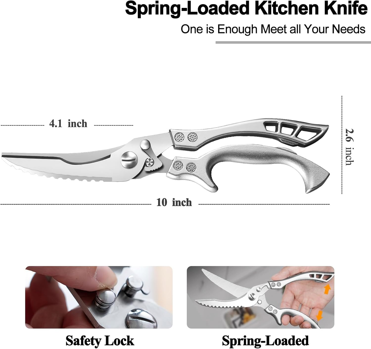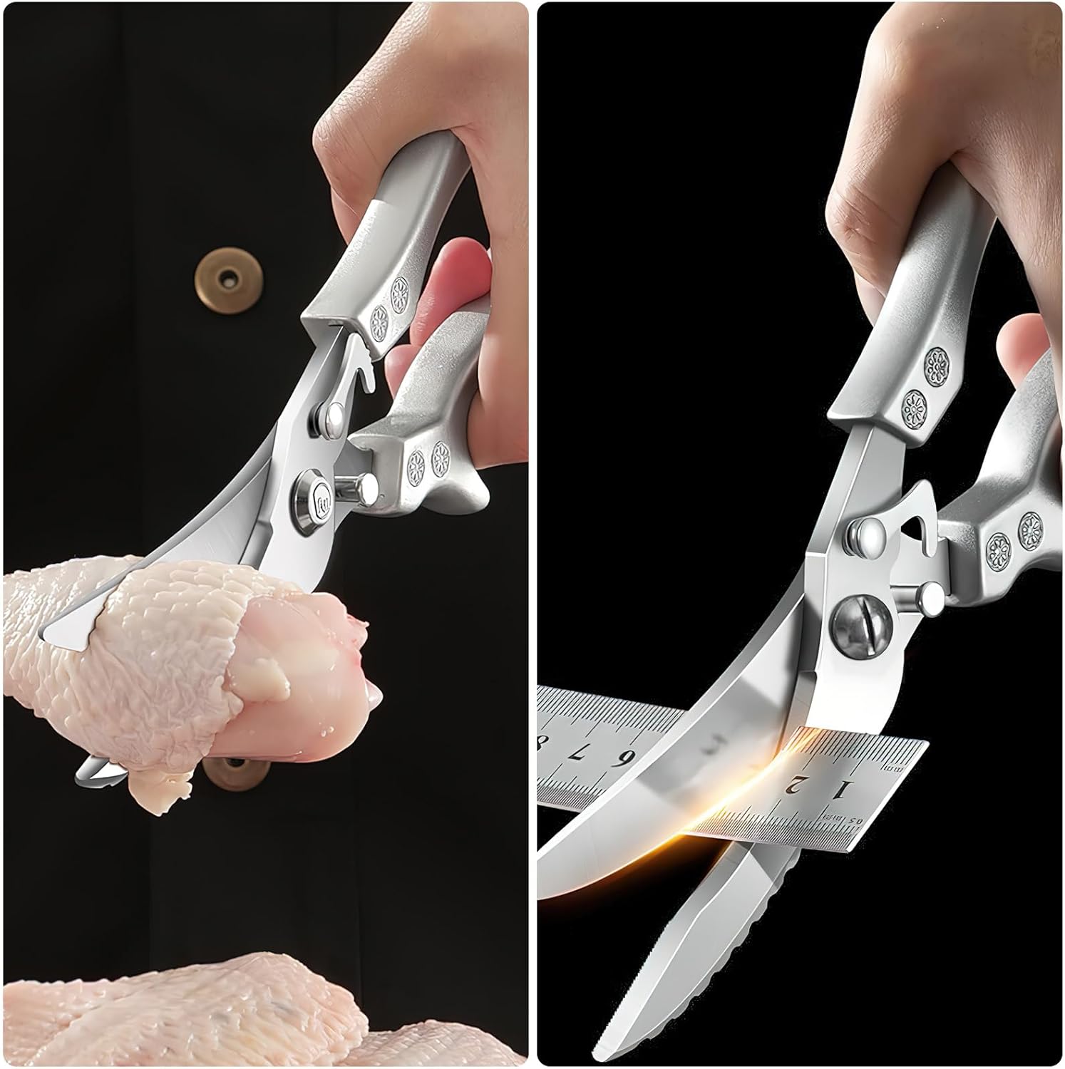 Poultry Shears Heavy Duty Professional, Multipurpose Kitchen Shears with Sheath, Spring-Loaded Stainless Steel Chef Scissors Cutting Bone, Chicken, Fish, Food, Meat, Full Steel Handle Silver