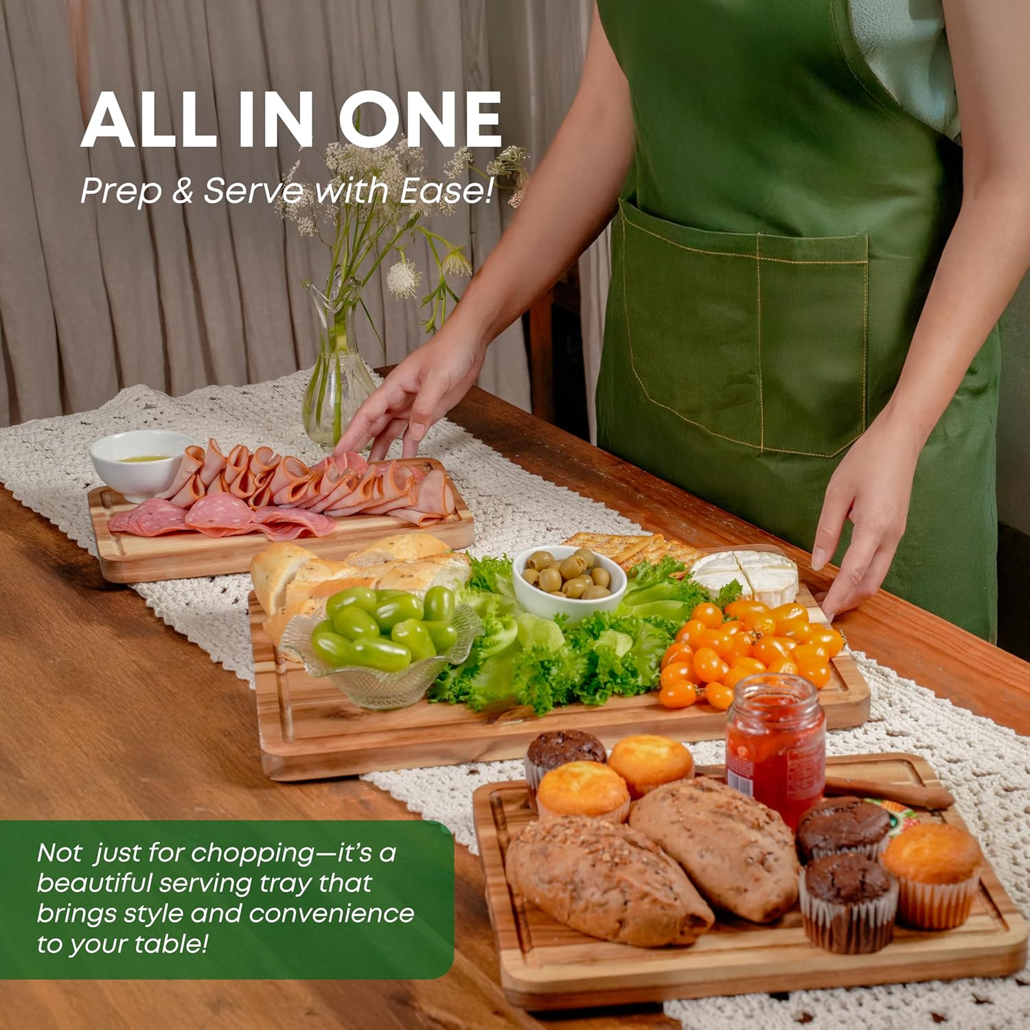 VieWood Acacia Wood Cutting Board Set of 3 for Kitchen, Butcher Block Cutting Board with Juice Grooves, Wooden Tray for Charcuterie Cheese, Meat, Pre-oiled Chopping Board, Durable, Knife-Friendly