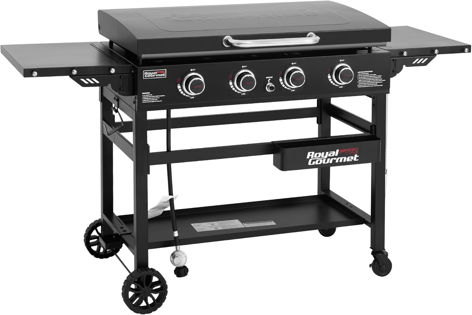 Royal Gourmet GB4000P 4 Burner Propane Gas Griddle with Hard Cover and Foldable Side Tables, 35-Inch Flat Top Grill with 766 Sq. In. Cooking Area for Backyard and Tailgating, Black