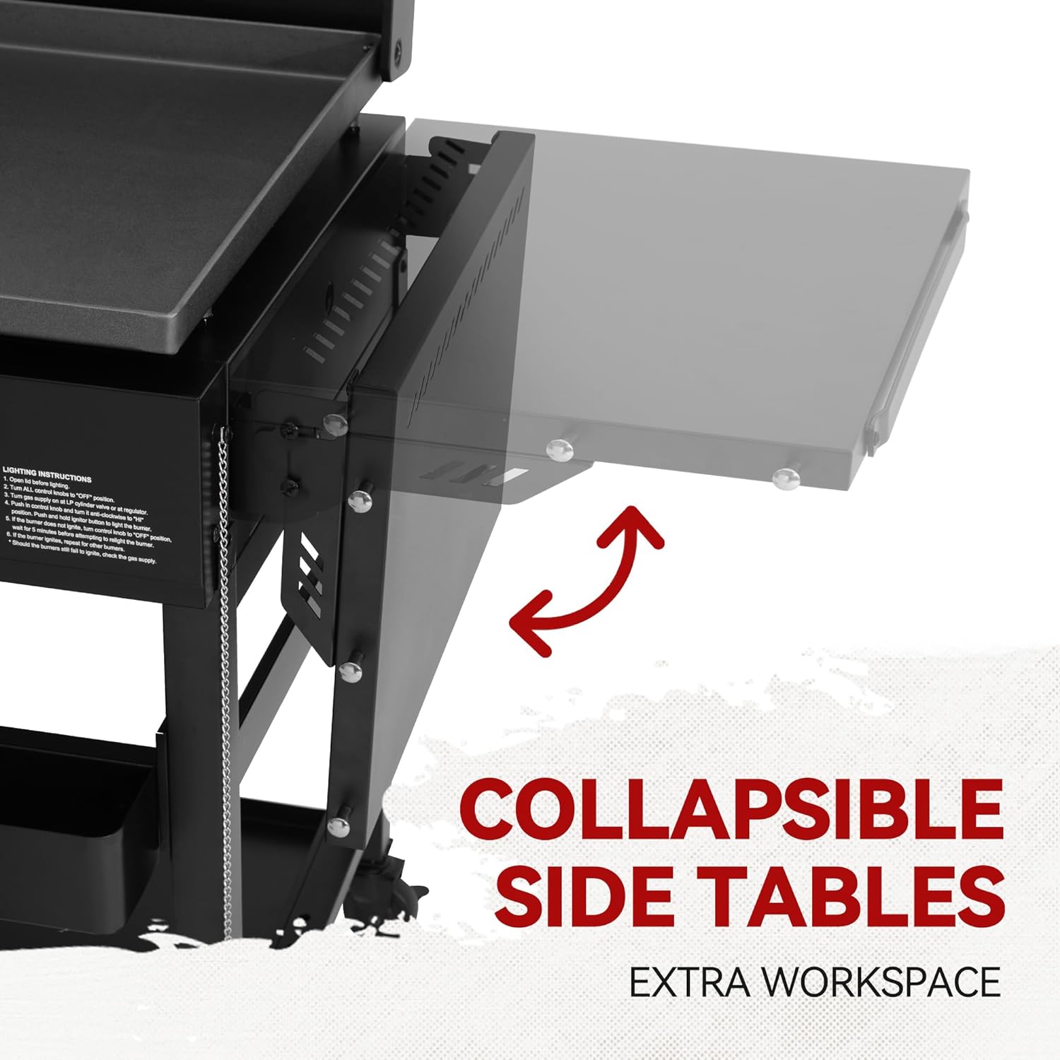 - Spacious Cooking Surface: 766 sq. in. pre-seasoned steel griddle cooking area measuring 34.92"L x 21.93"W provides enough space for daily meals with family or friends
