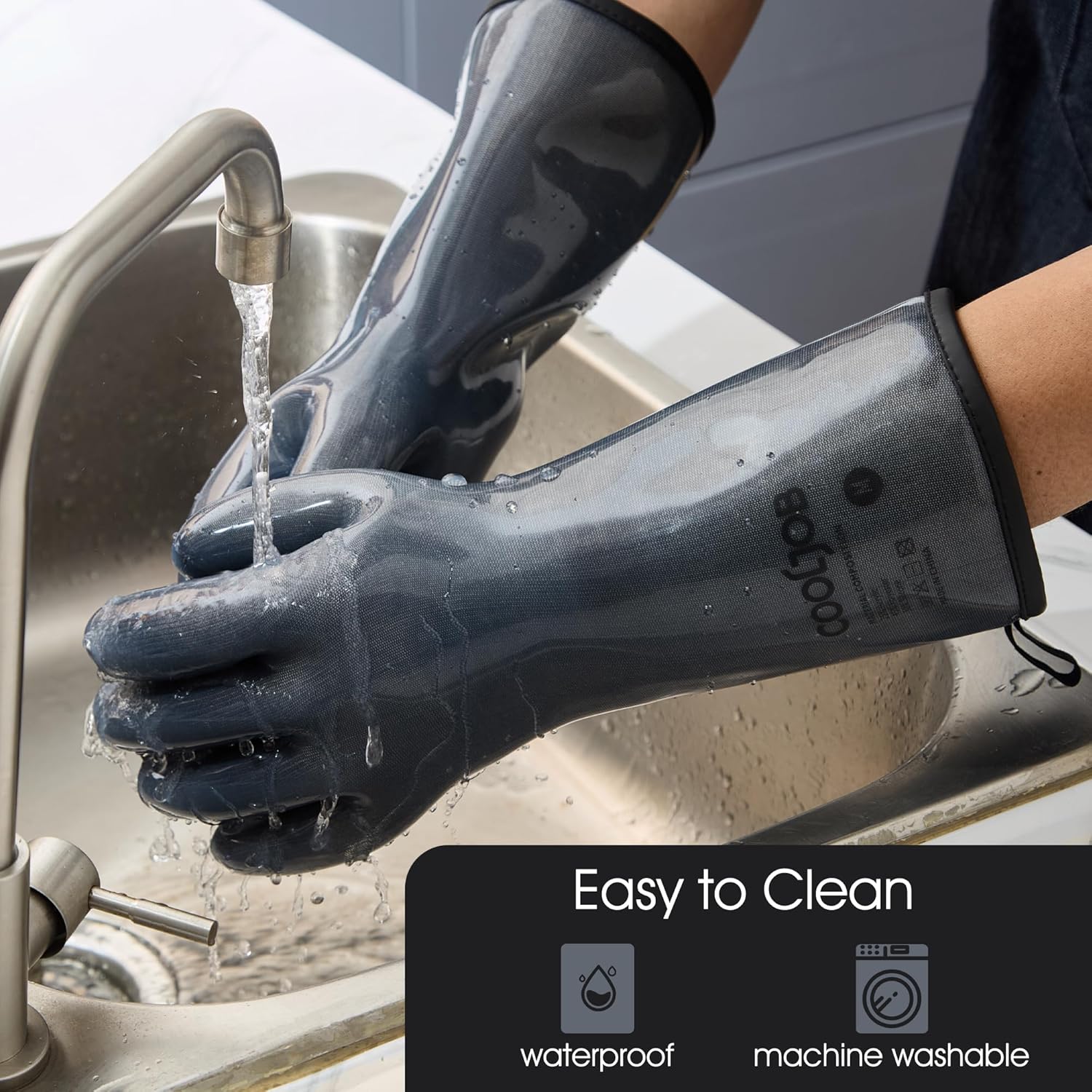 - High Quality Liquid Silicone Gloves: The kitchen gloves are made of Food Grade odorless silicone. With 13-inch sleeve, the gloves provide perfect protection for your hands and arms, defense against hot water and steam.