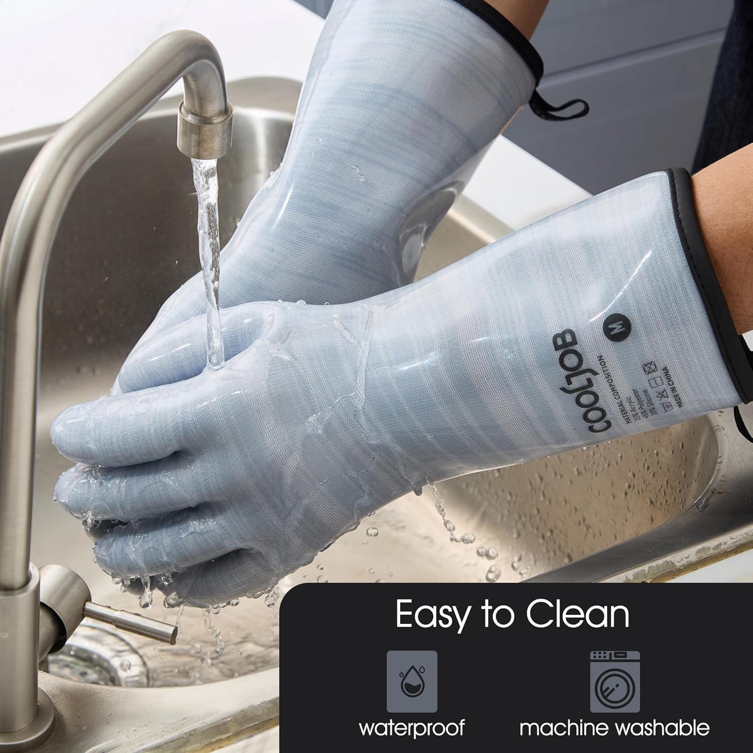 COOLJOB Heat Resistant Oven Gloves, Waterproof Liquid Silicone BBQ Grilling Gloves for Barbecue, Kitchen Cleaning, Baking, Blue, Large