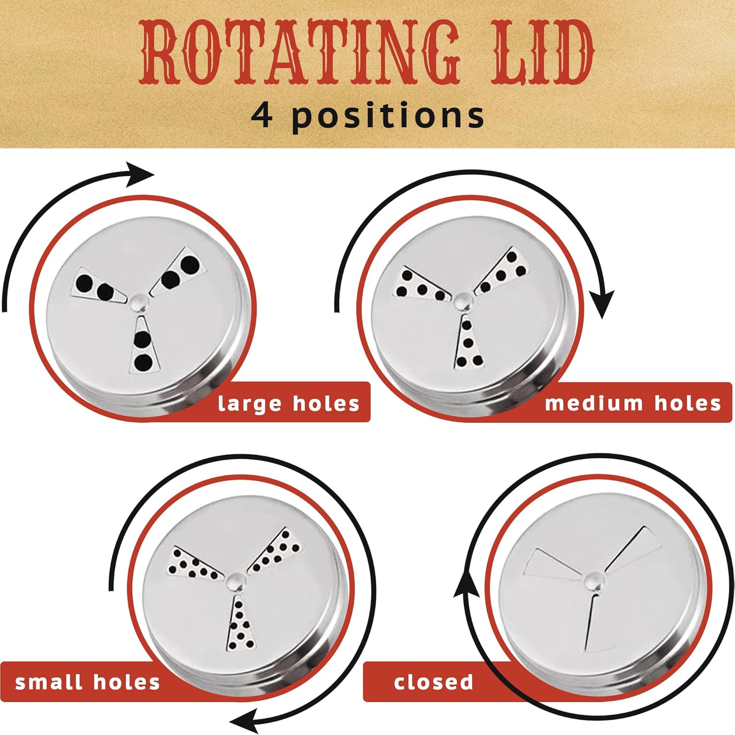 CUSINIUM [Pack of 6] 10 oz Seasonings Spice Shakers - BBQ Dry Rub Shakers - Cooking Dredge with Adjustable Fan-Style Lid and Handles