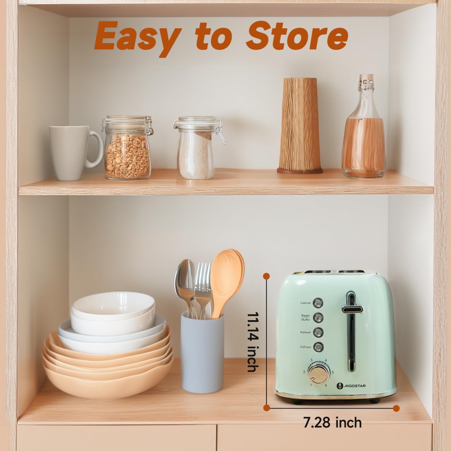 - Safe to Use: Heat insulation design around the toaster’s body to prevent it from scalding hands for safety use; High lift design provides more protection to avoid burnt risk when removing bread. Handy and tiny cord storage under the bottom