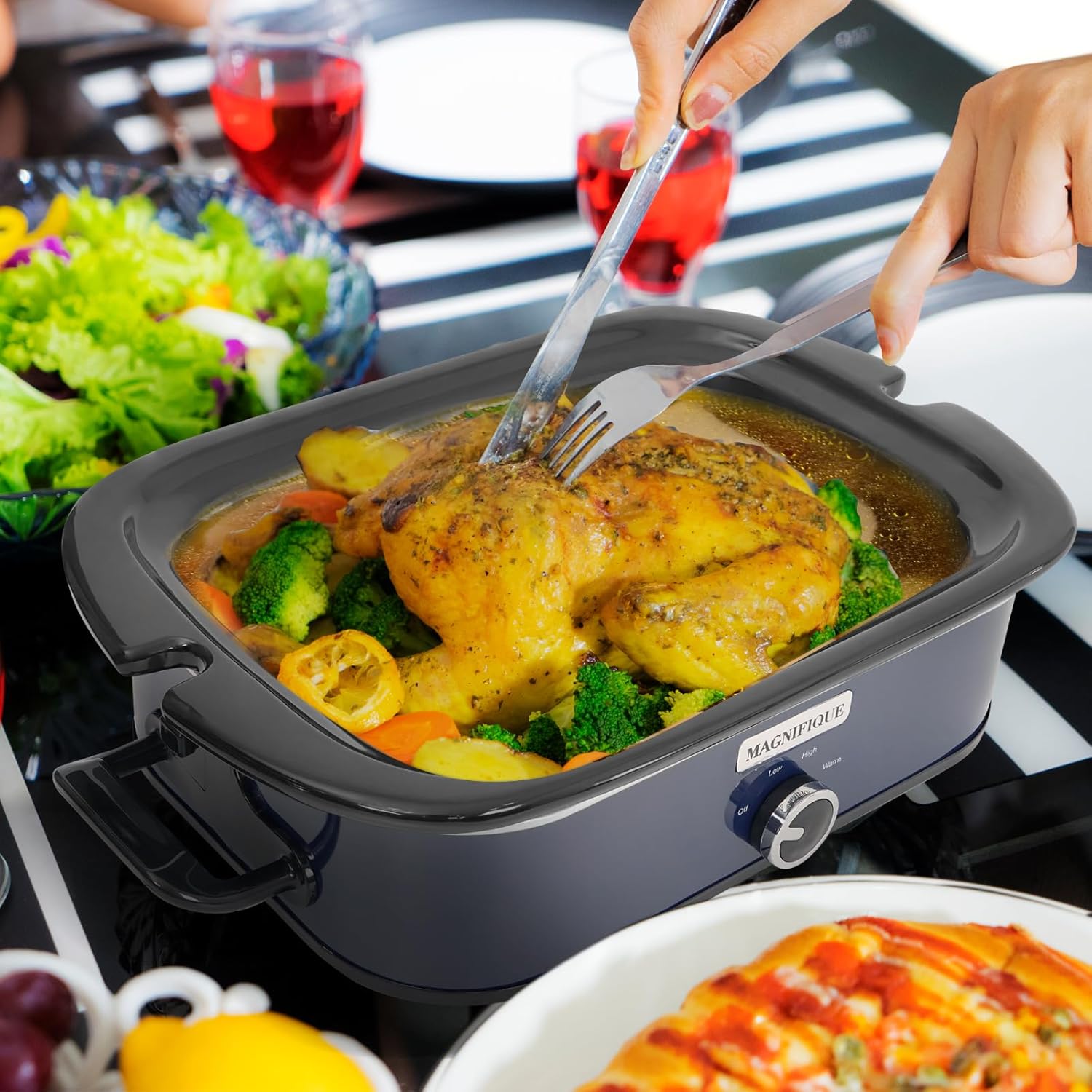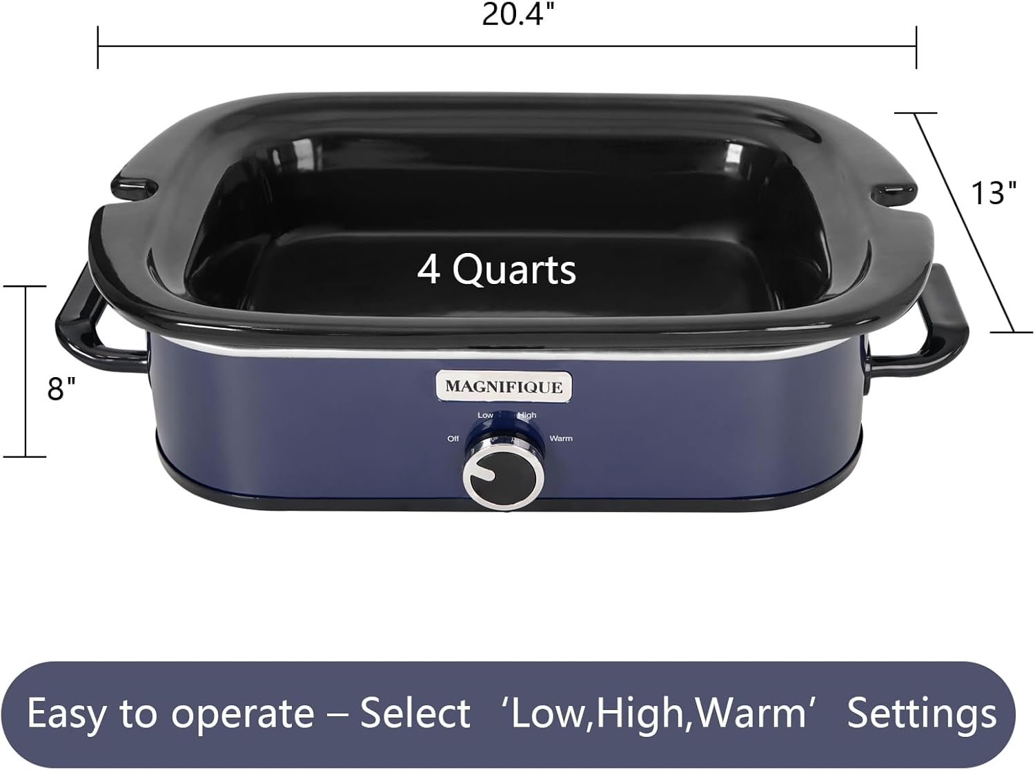 - MULTIPLE HEAT SETTINGS – Select between “Low” or “High” cooking temperatures. Depends on what you are cooking and how long you want to slow cook for. Also, use the “Keep Warm” setting to keep your food warm for hours after you are finished cooking.