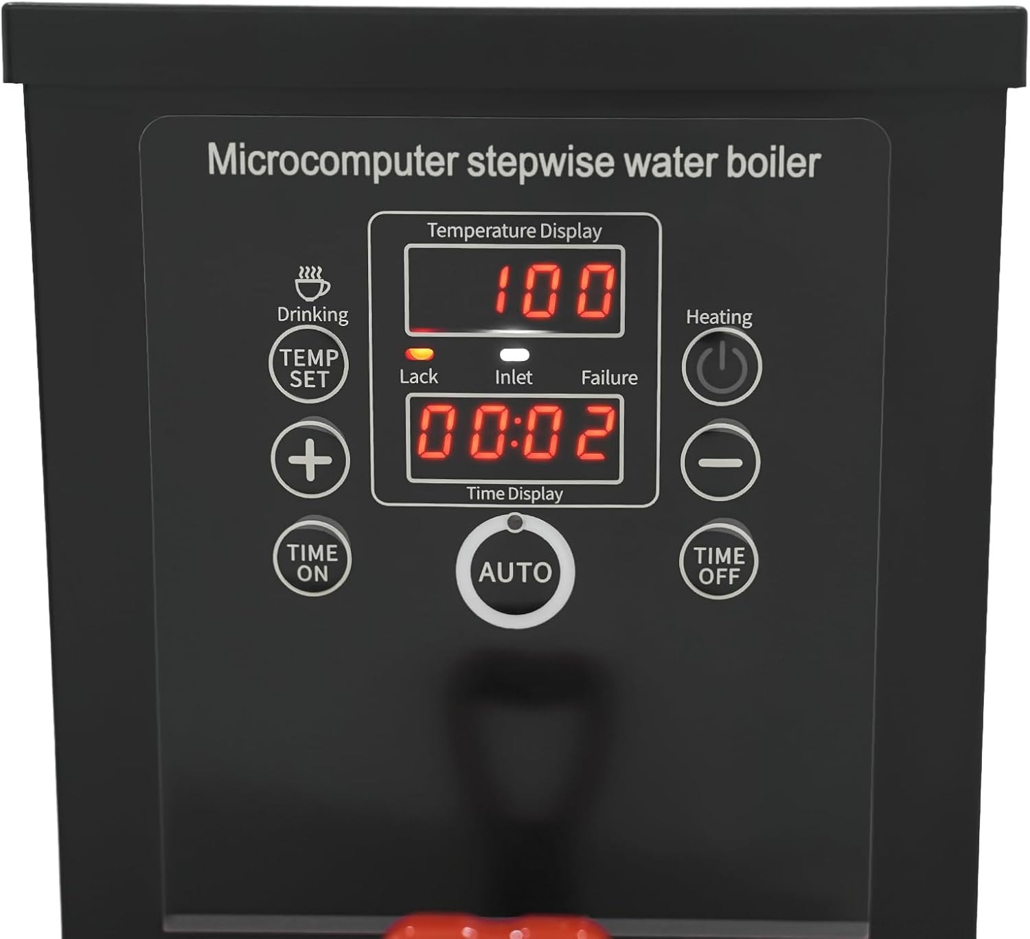 - 【Easy to Use & Good Material】: The smart digital display screen shows you the temperature in real-time and lets you see all the functions at a glance. The sensitive keys allow you to adjust easily. You can also set on and off times for your convenience. This commercial water boiling machine and dispenser mainly uses 304 stainless steel for the material, with high hardness, good performance of corrosion and rust resistance, making you drink it with peace of mind.